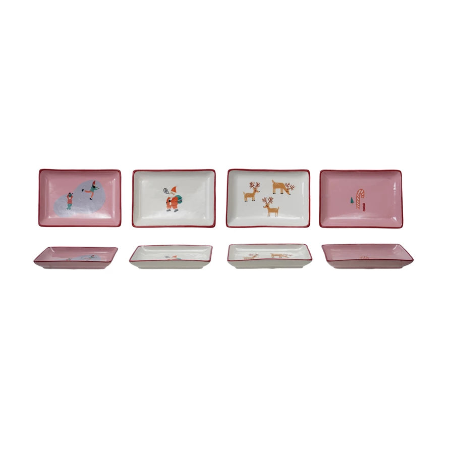 Stoneware Dish with North Pole Pattern & Red Rim - 4 Styles ©