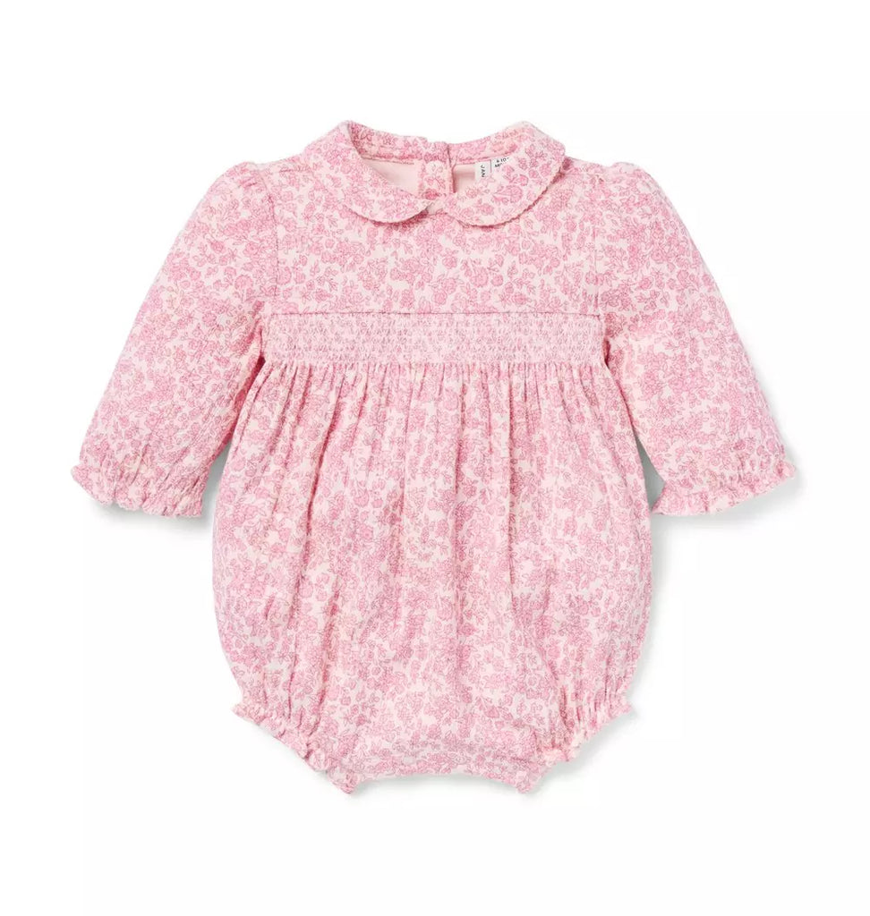 Baby Ditsy Floral Smocked Romper - Pearl Pink Ditsy Floral