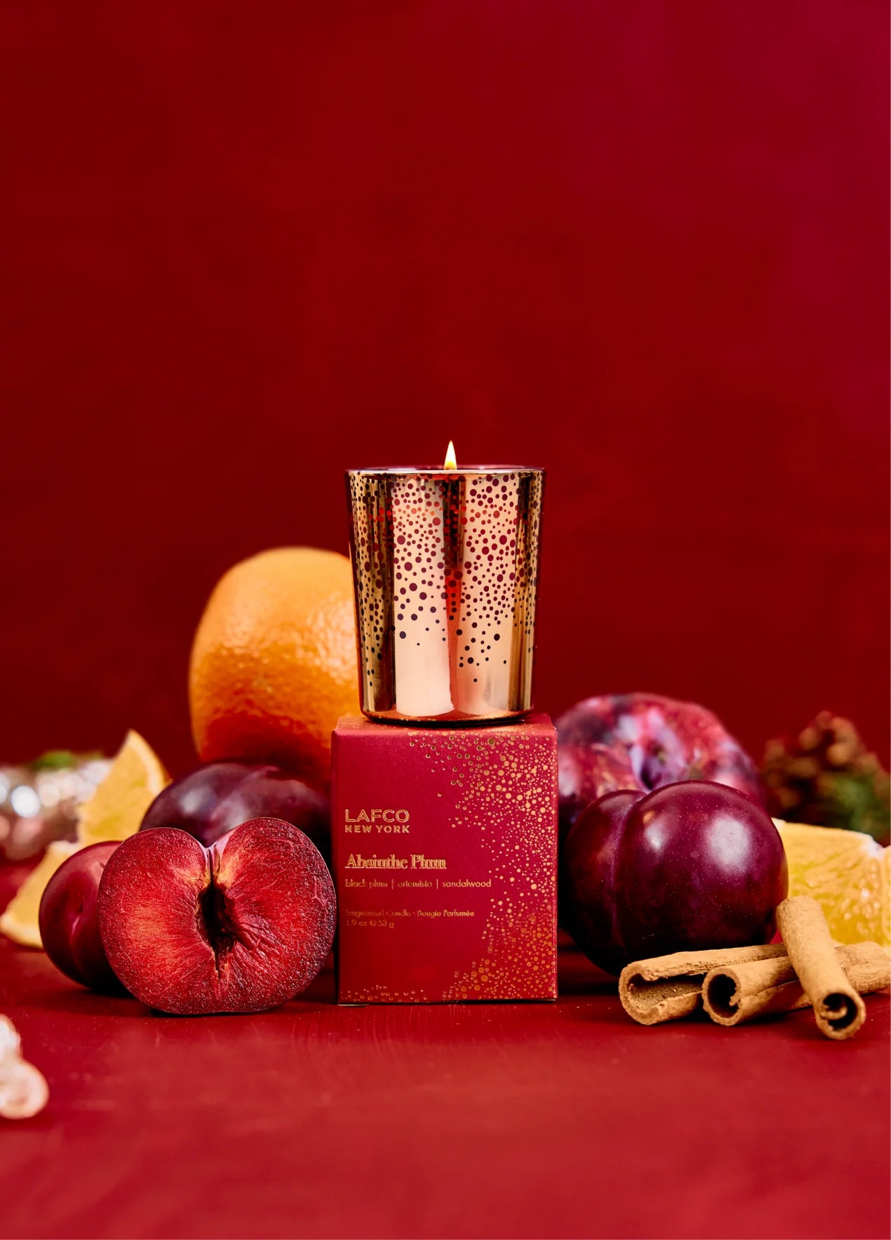 A sparkling winter fete, imbued with the glow of the holidays. Ripened black plum takes on a spiced decadence with mandarin zest, mulled blackberry, and