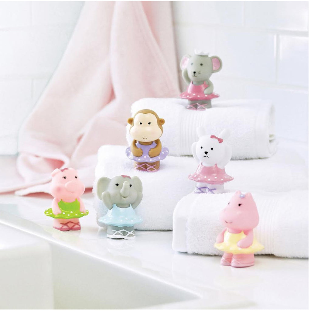 Get ready for lots of fun in the tub. Now, the party doesn't have to end when it's bath time for your little one! They're perfect for beach and pool time as well because our Party Squirtie Sets float and squirt water! Every little ballerina will love the Ballet Party Squirtie Set, which comes with 6 fun animal ballerinas: Ballerina Rabbit, Ballerina Monkey, Ballerina Elephant and more.