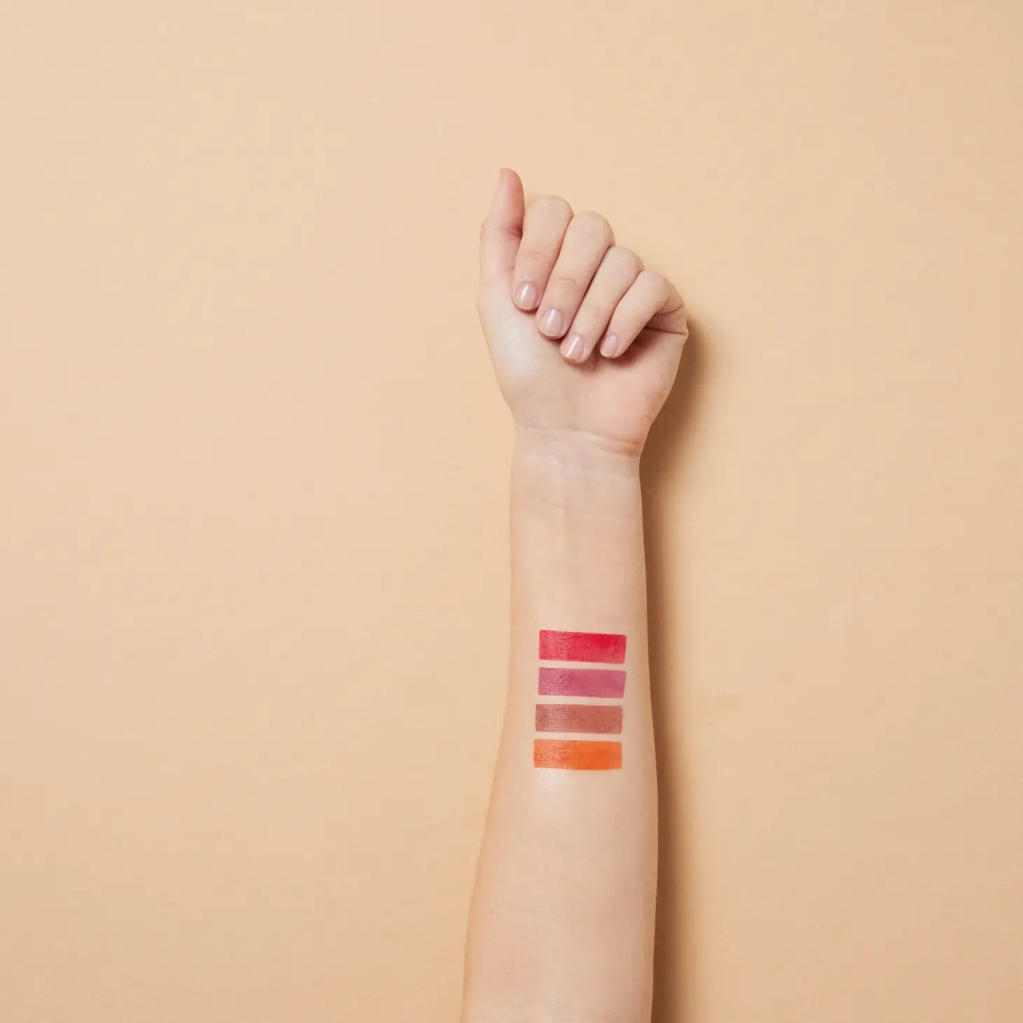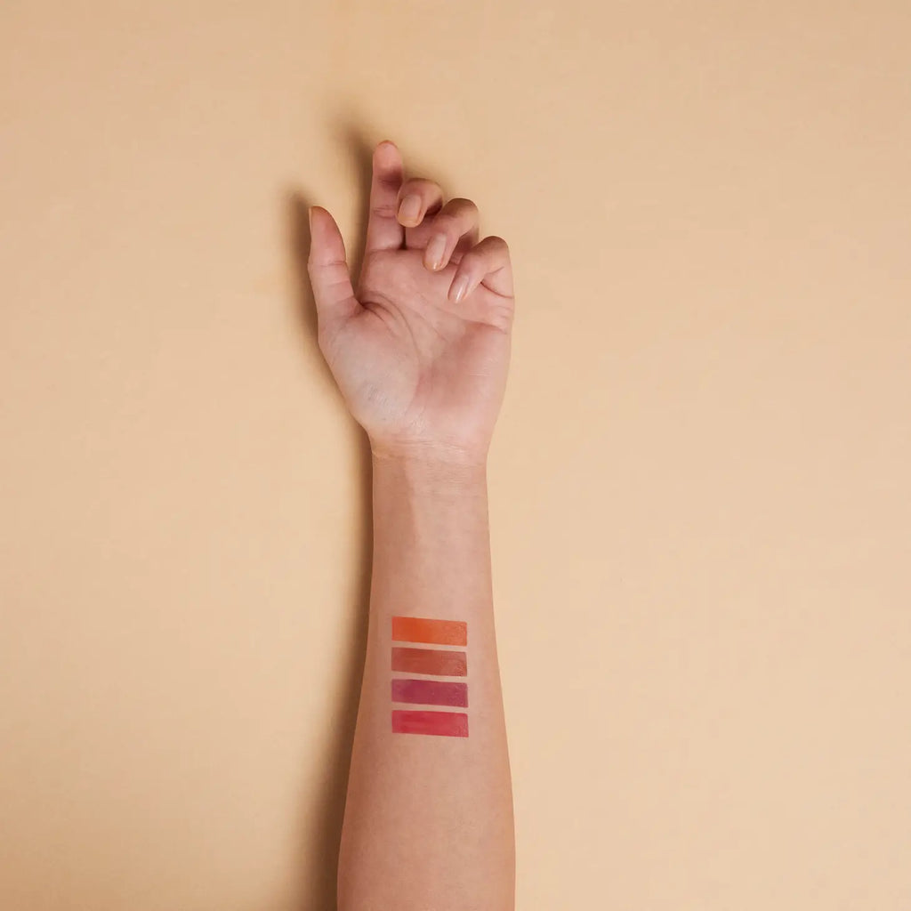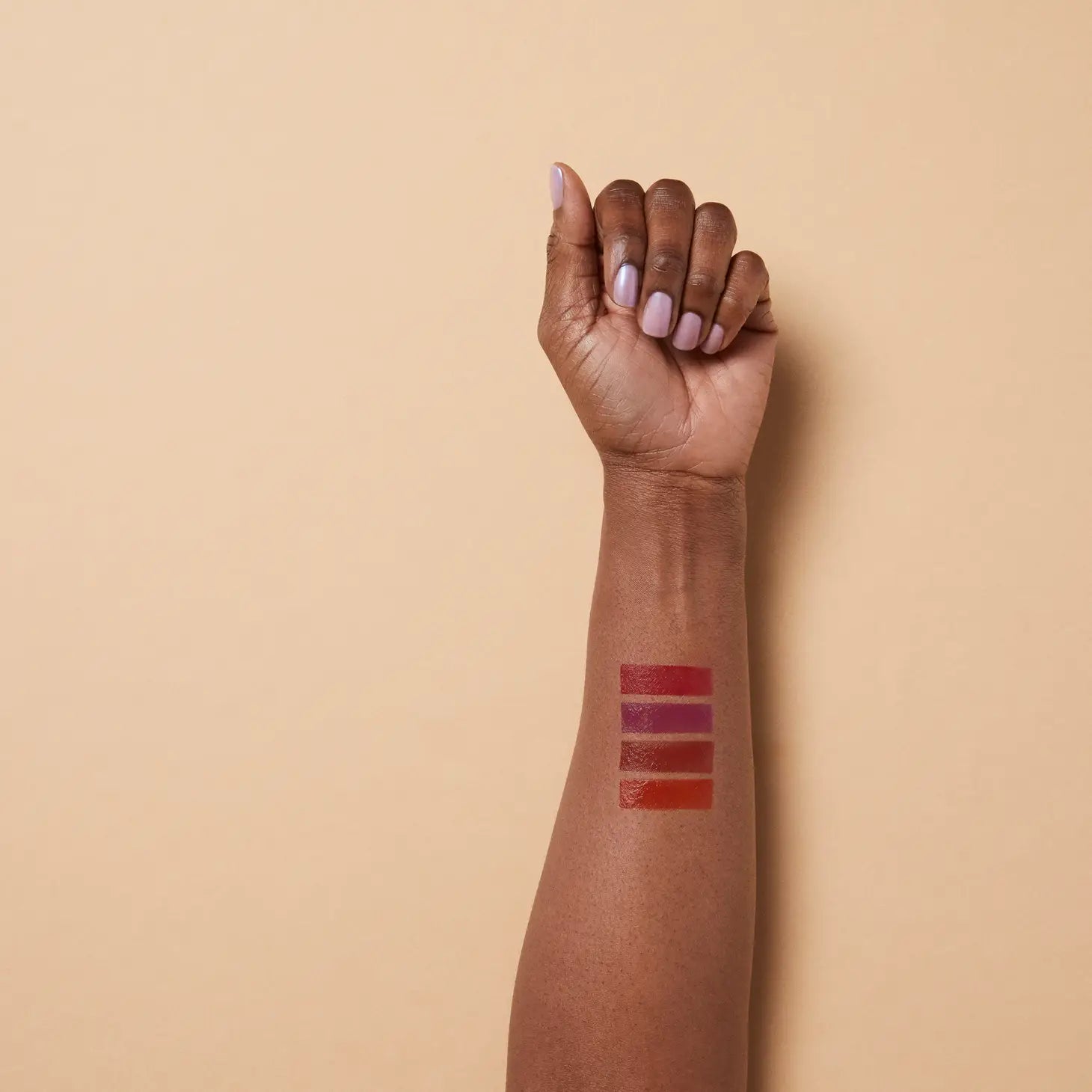 Soft and luminous, this Boysenberry purple color is transparent yet adds depth to lips and highlights cheeks.