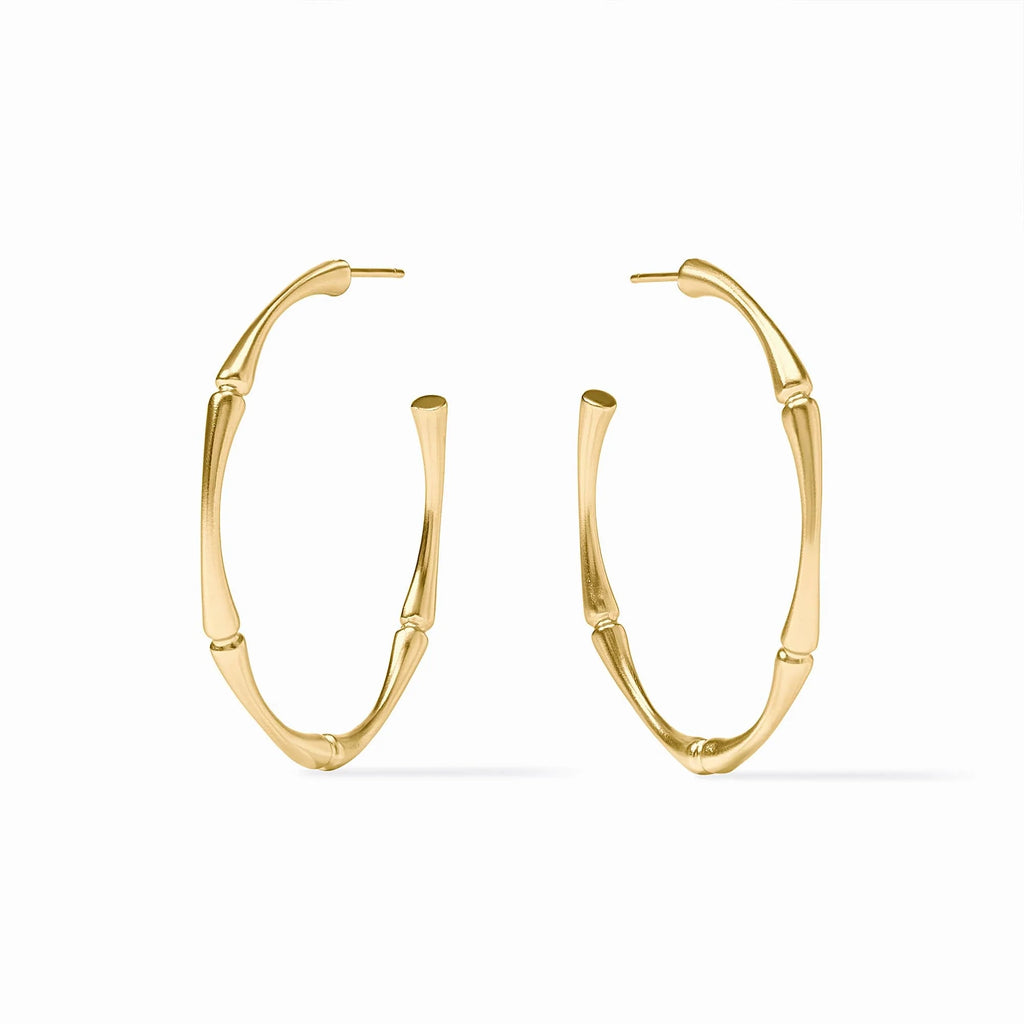 Symbolic of longevity and success, bamboo comes to life in each size of these sleek and slender golden hoops.