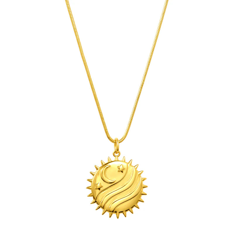 "The Bezac pendant necklace represents slow summer living in the countryside of France. When I wear this sun around my neck, it reminds me to slow down, be present and appreciate the small moments." - Ella