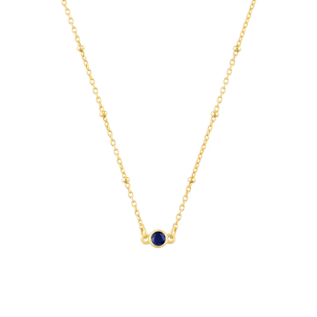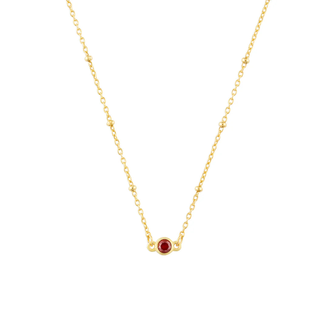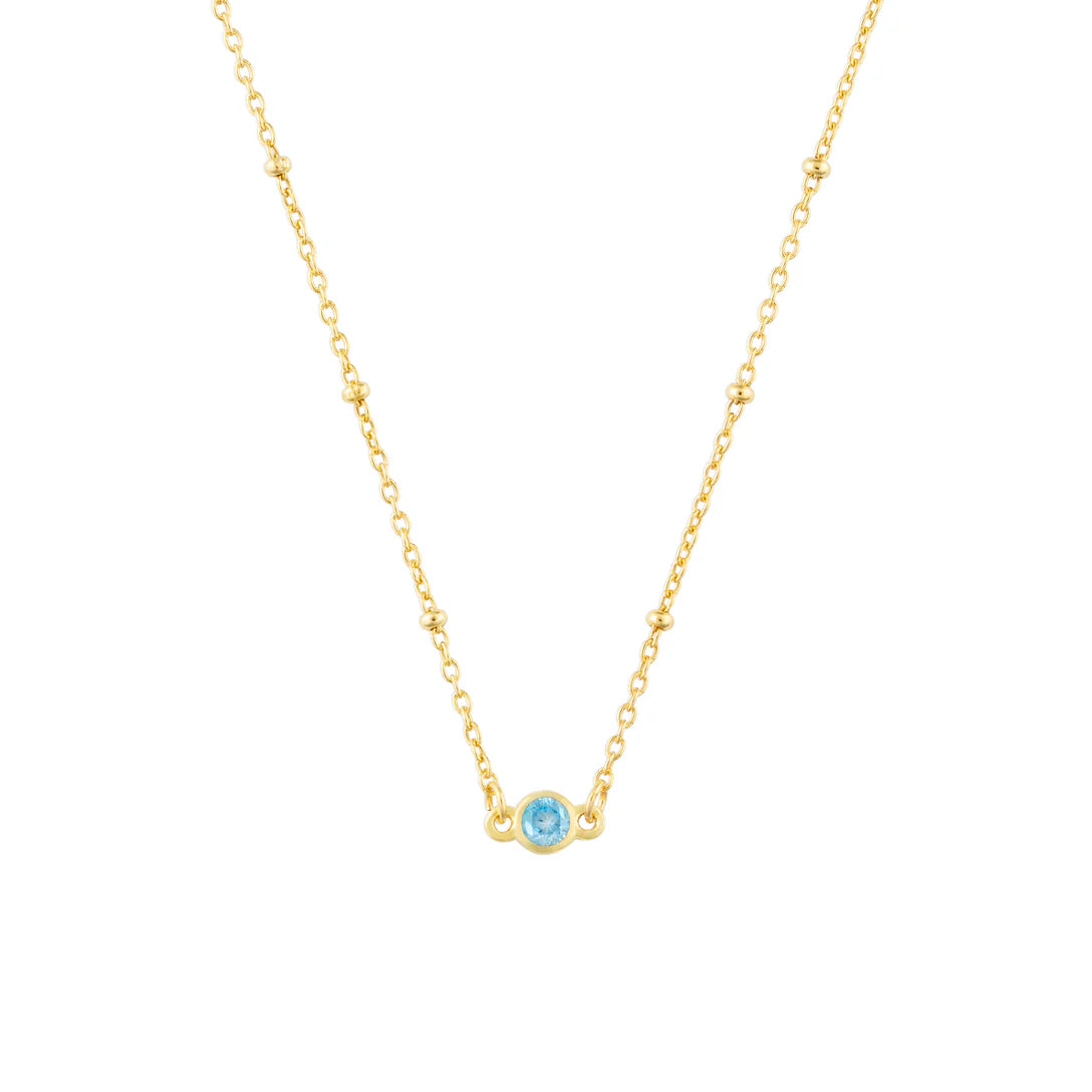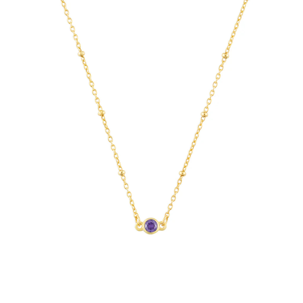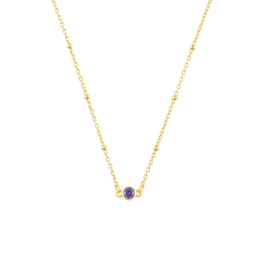Dainty birth month inspired stone on an 18k gold plated sterling silver chain, 16” length.