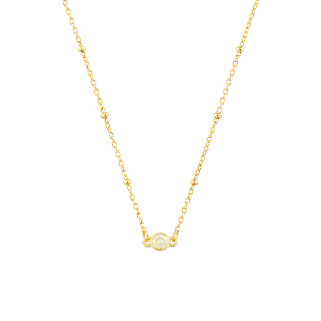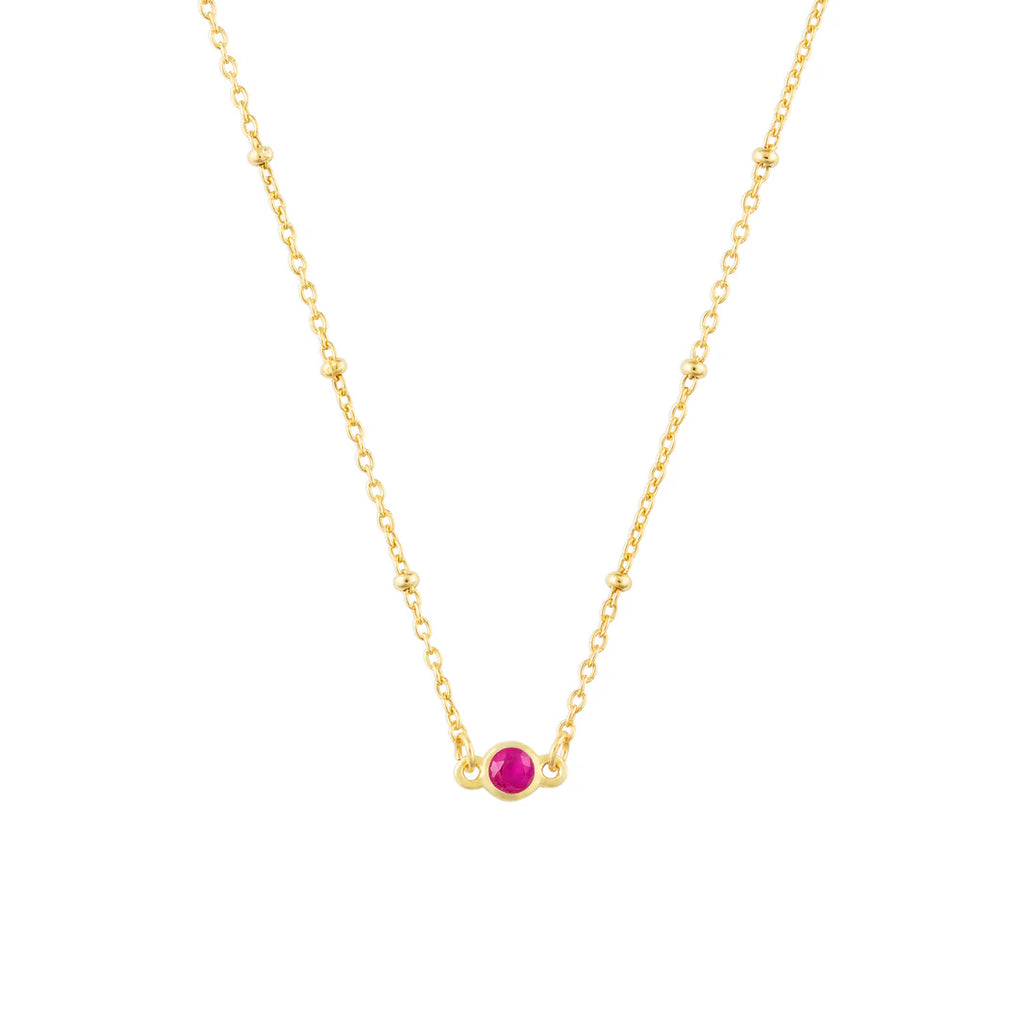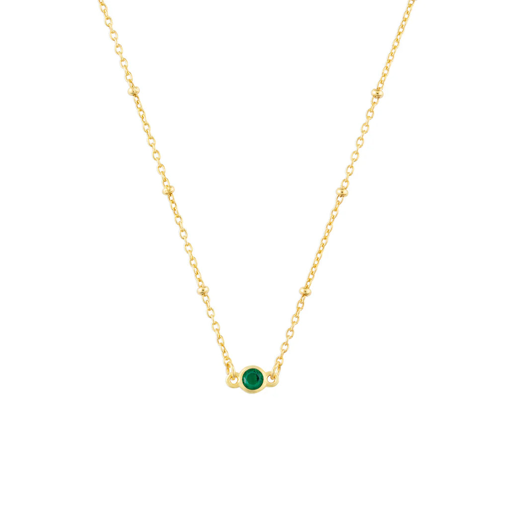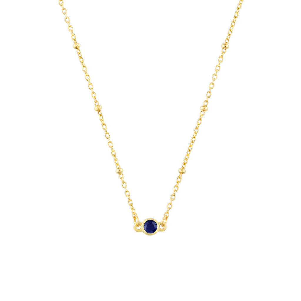 Dainty birth month inspired stone on an 18k gold plated sterling silver chain, 16” length.