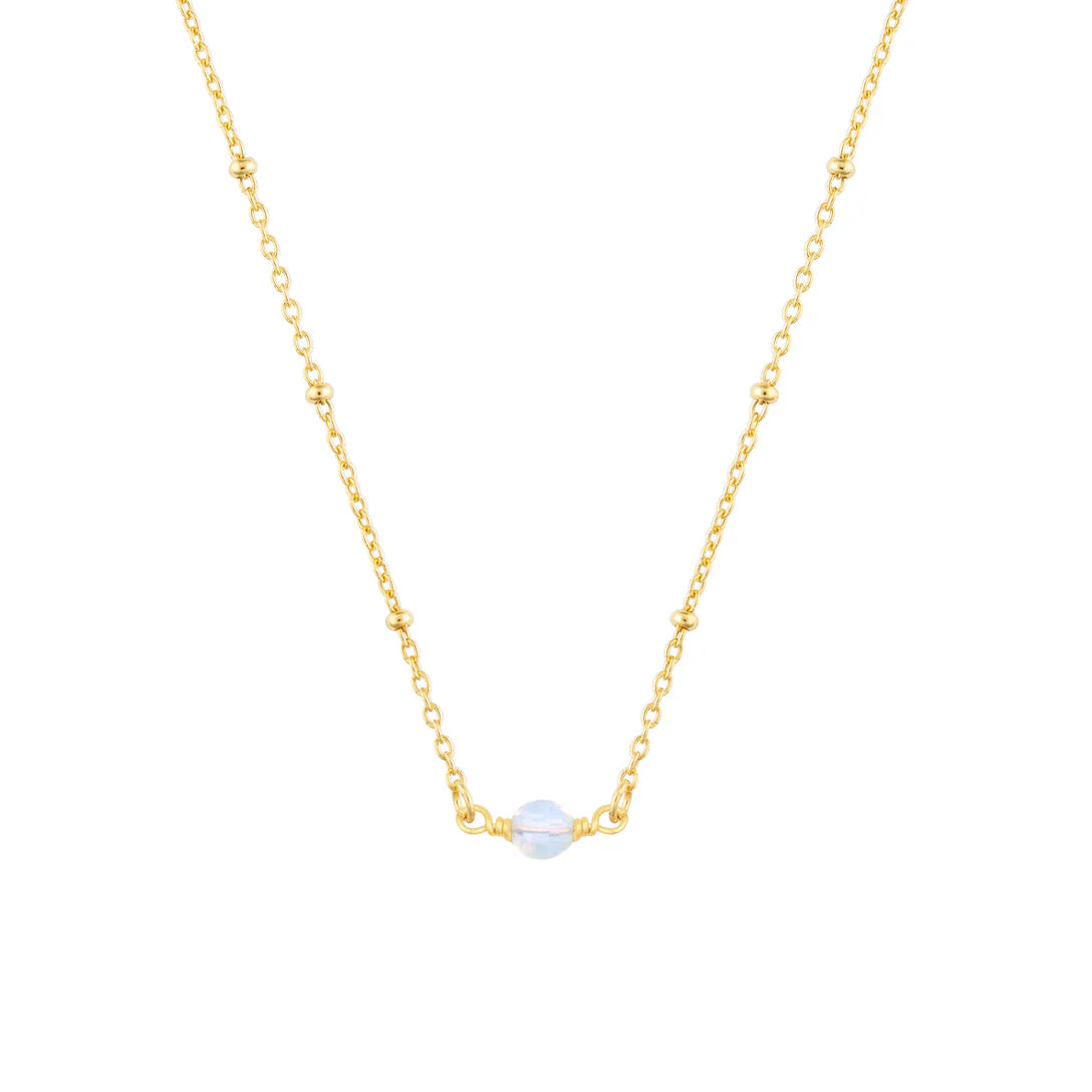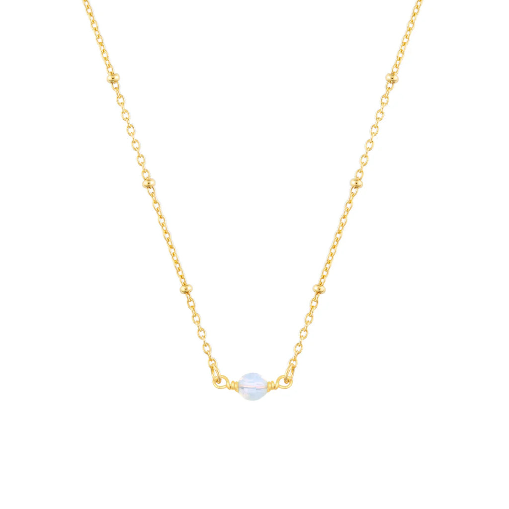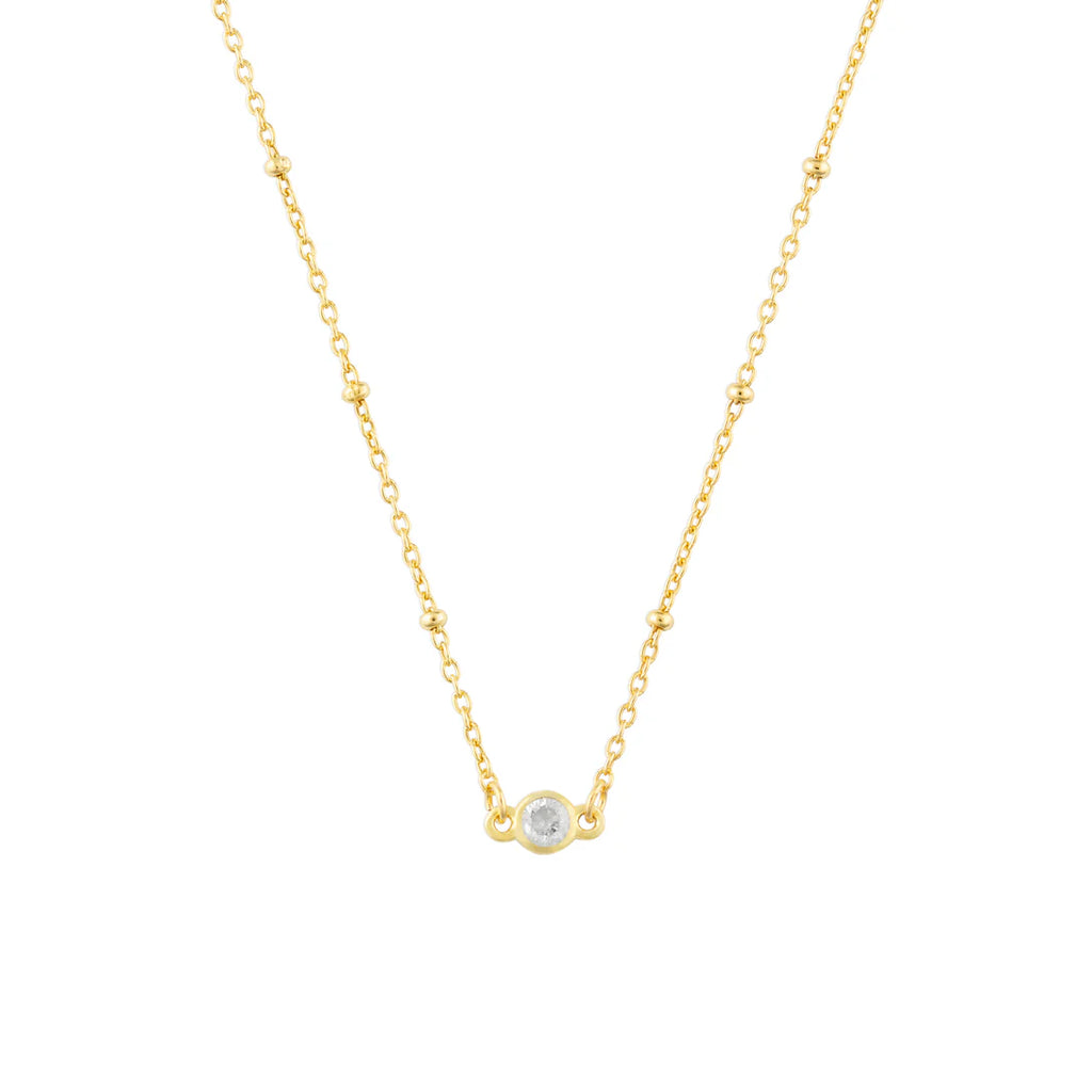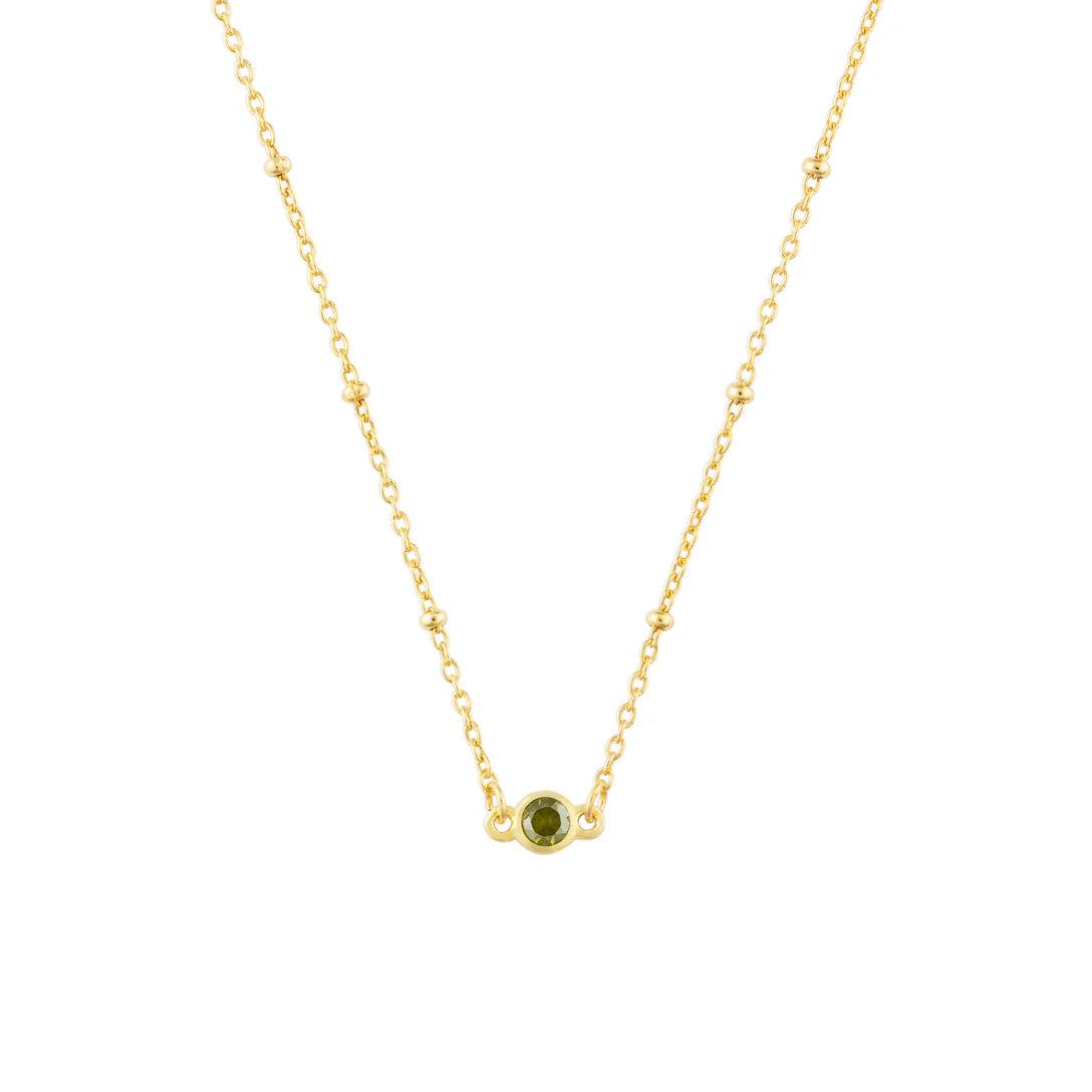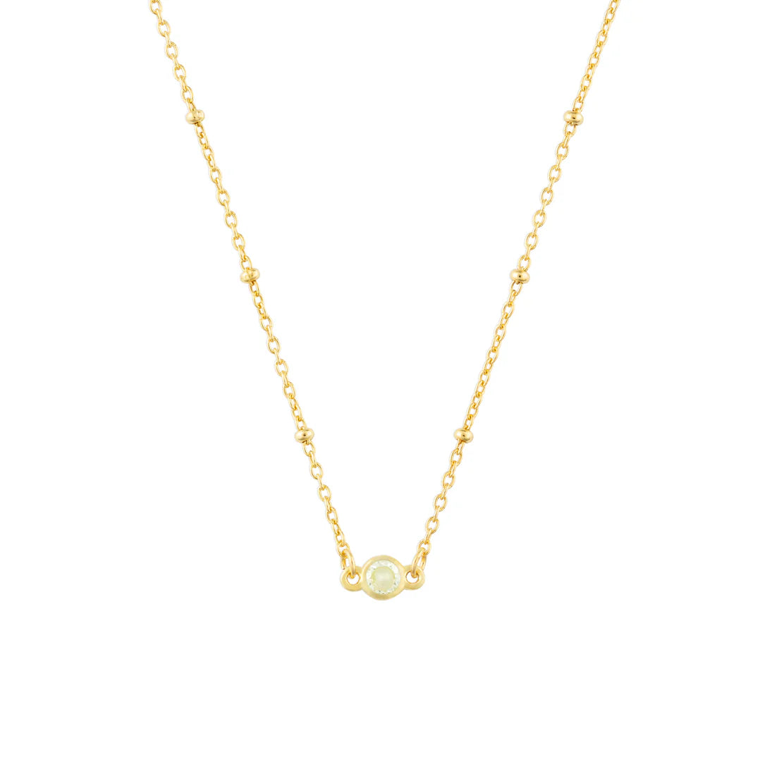 Dainty birth month inspired stone on an 18k gold plated sterling silver chain, 16” length.