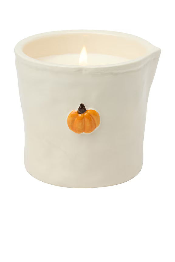 Crafted from 100% ceramic and finished in an imperfect white glaze, this bistro-style vessel features a beautifully embossed pumpkin design — a subtle nod to autumn’s favorite flavor. Each candle comes nestled in a rigid sliding box, adorned with hand-painted food icons, making it perfect for gifting or display.