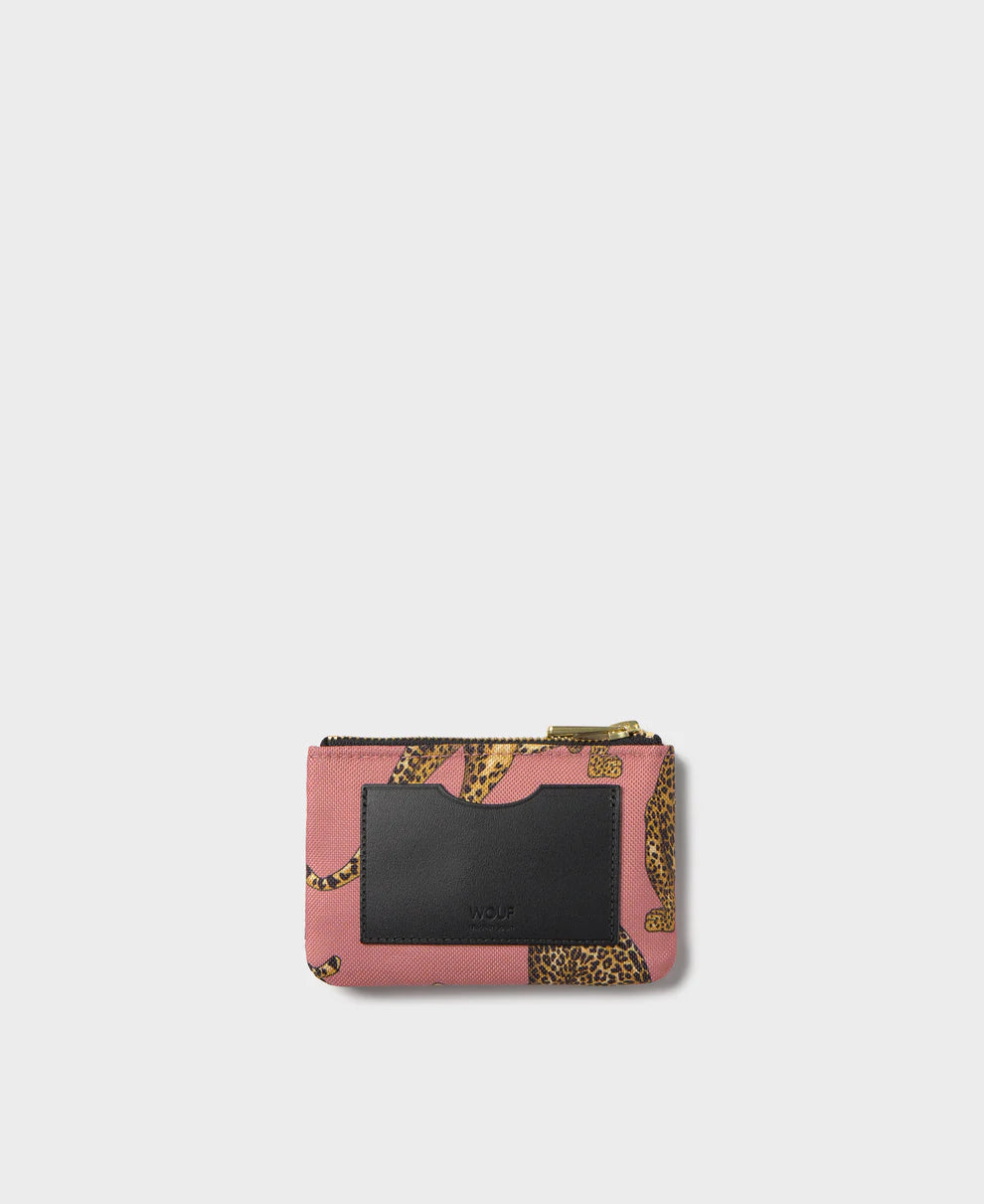 The Blush Leopard wallet, made from 100% recycled fabrics, is a practical companion for your essentials. Its water-repellent finish protects your belongings, while the leather card slot provides easy access to your most frequently used cards.