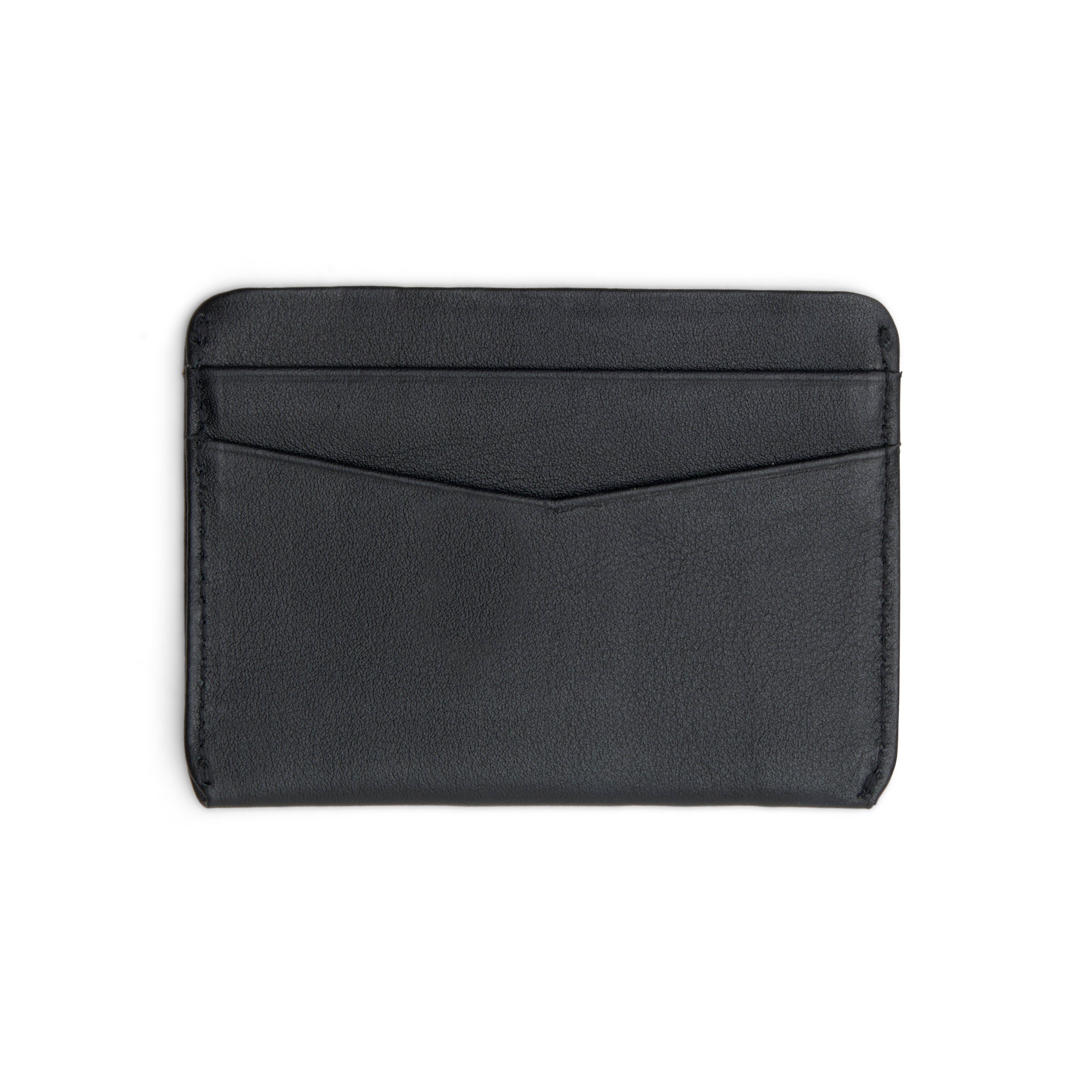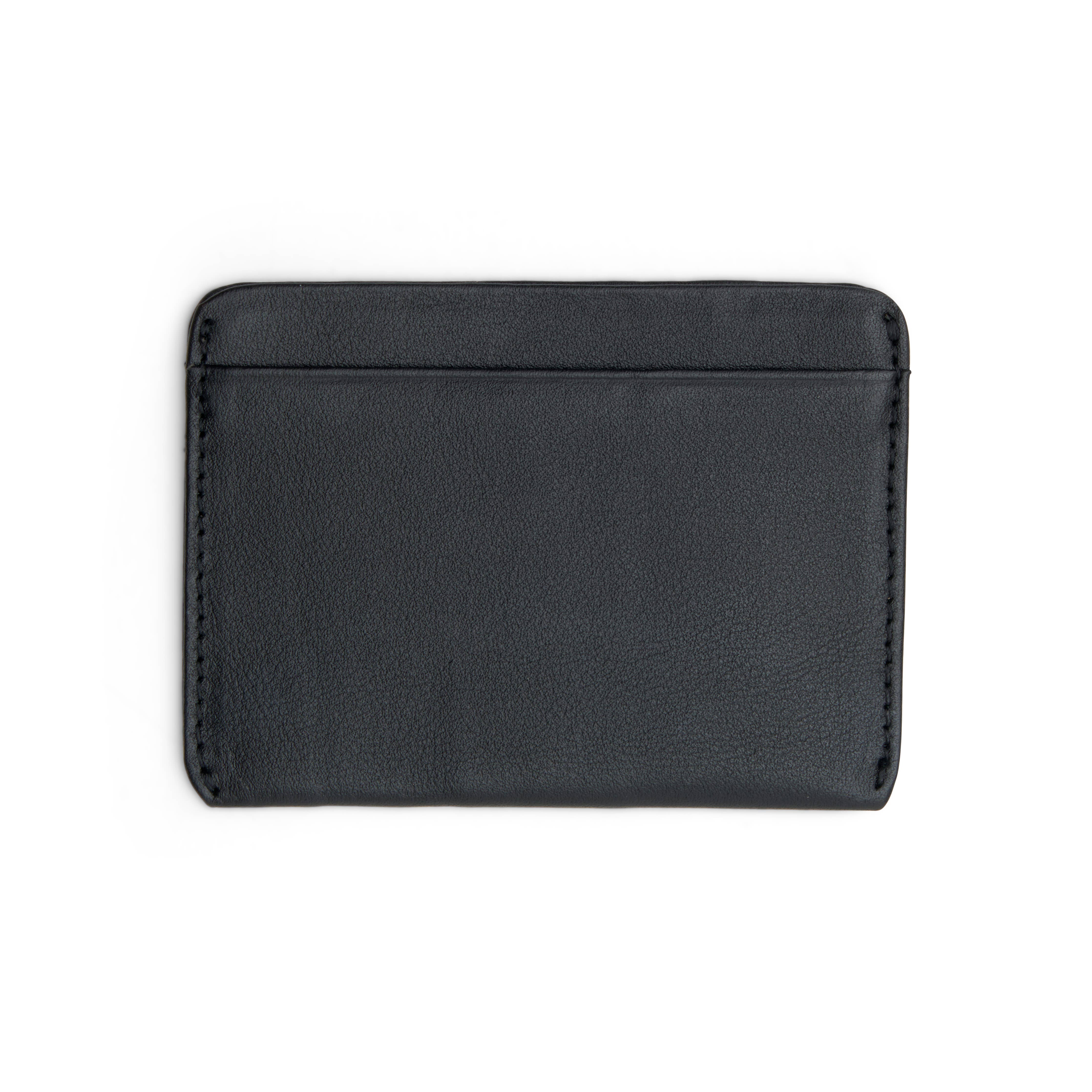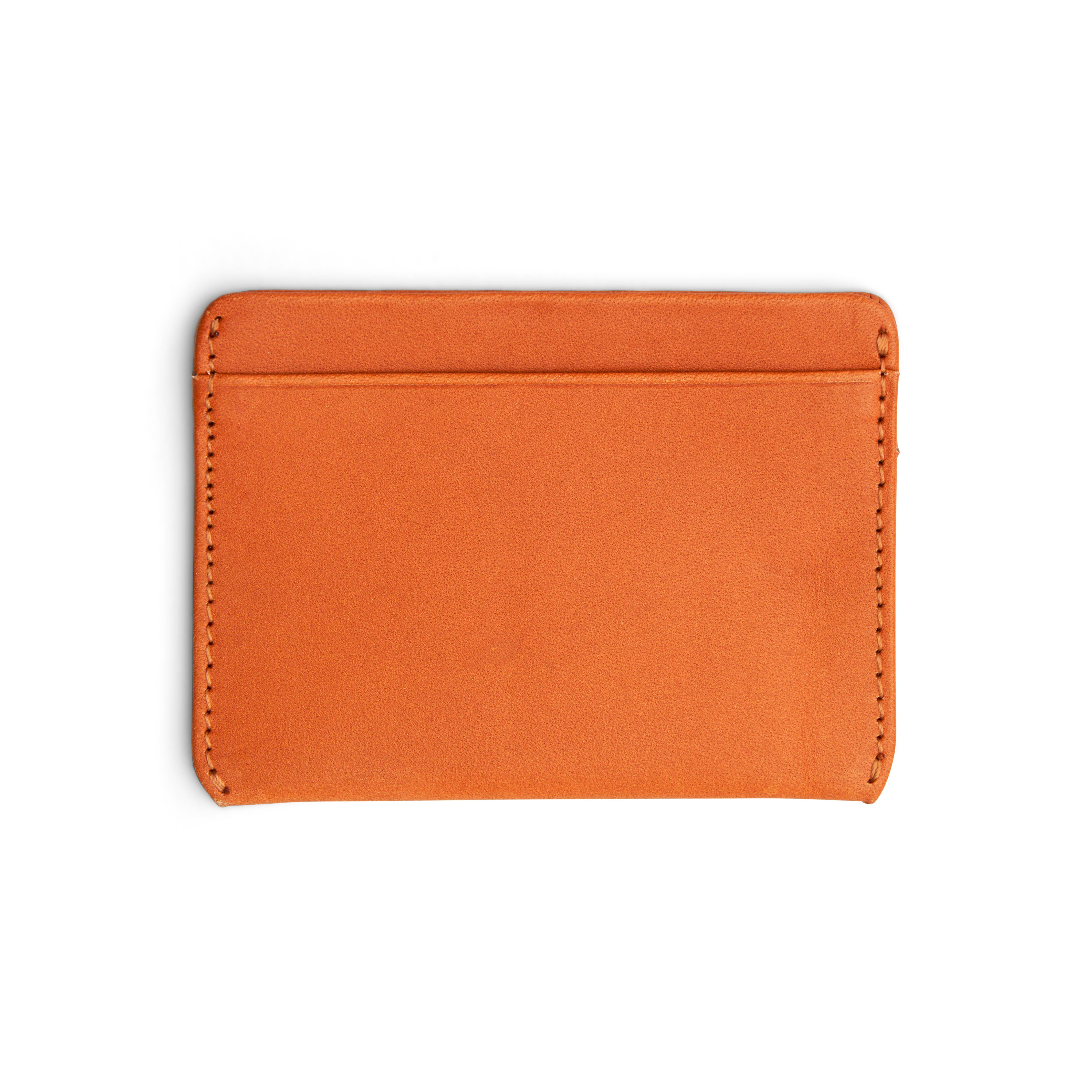 A leather card sleeve elegant in its simplicity. 2 slots in the front, 1 on the back, and one on top.