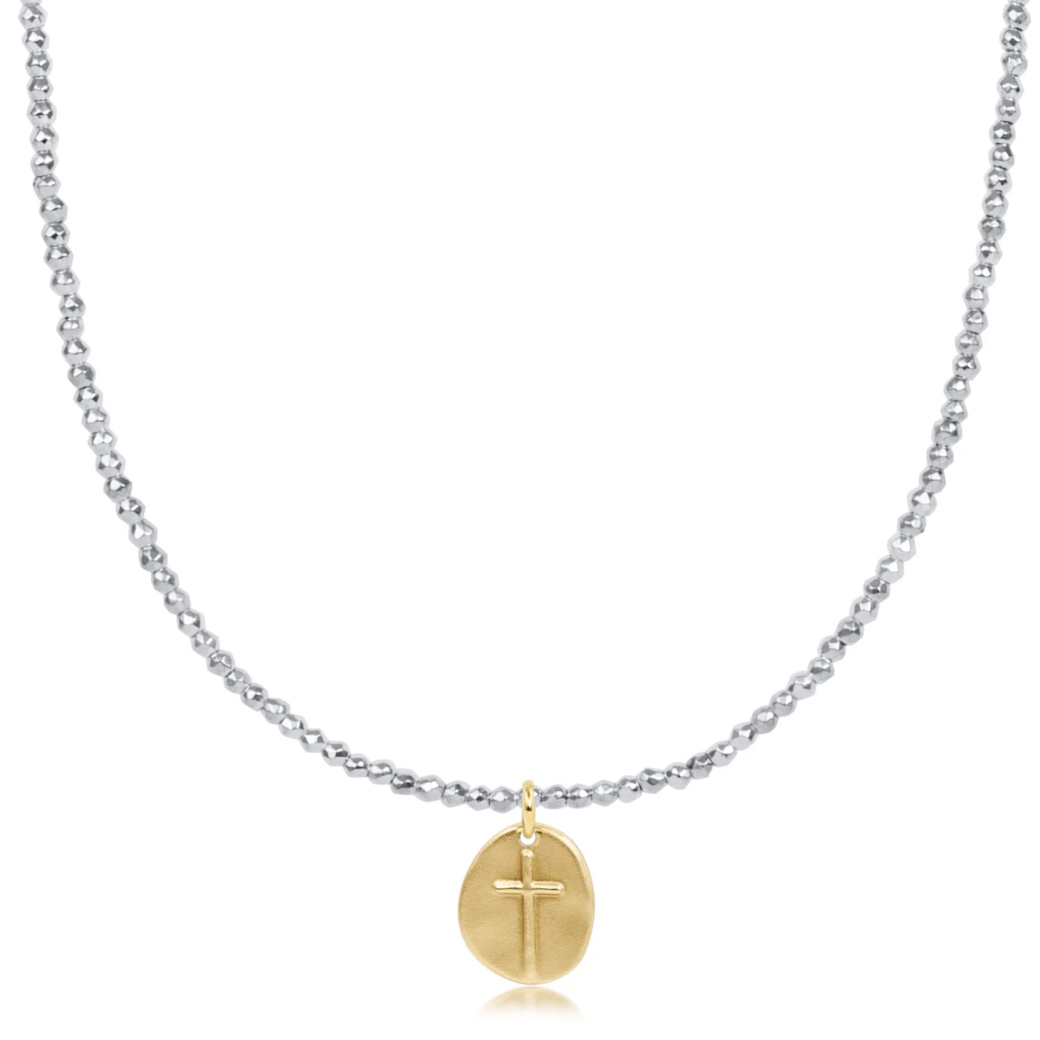 Choker Bright Silver Faceted Hematite 2mm Bead - Inspire Small Gold Charm