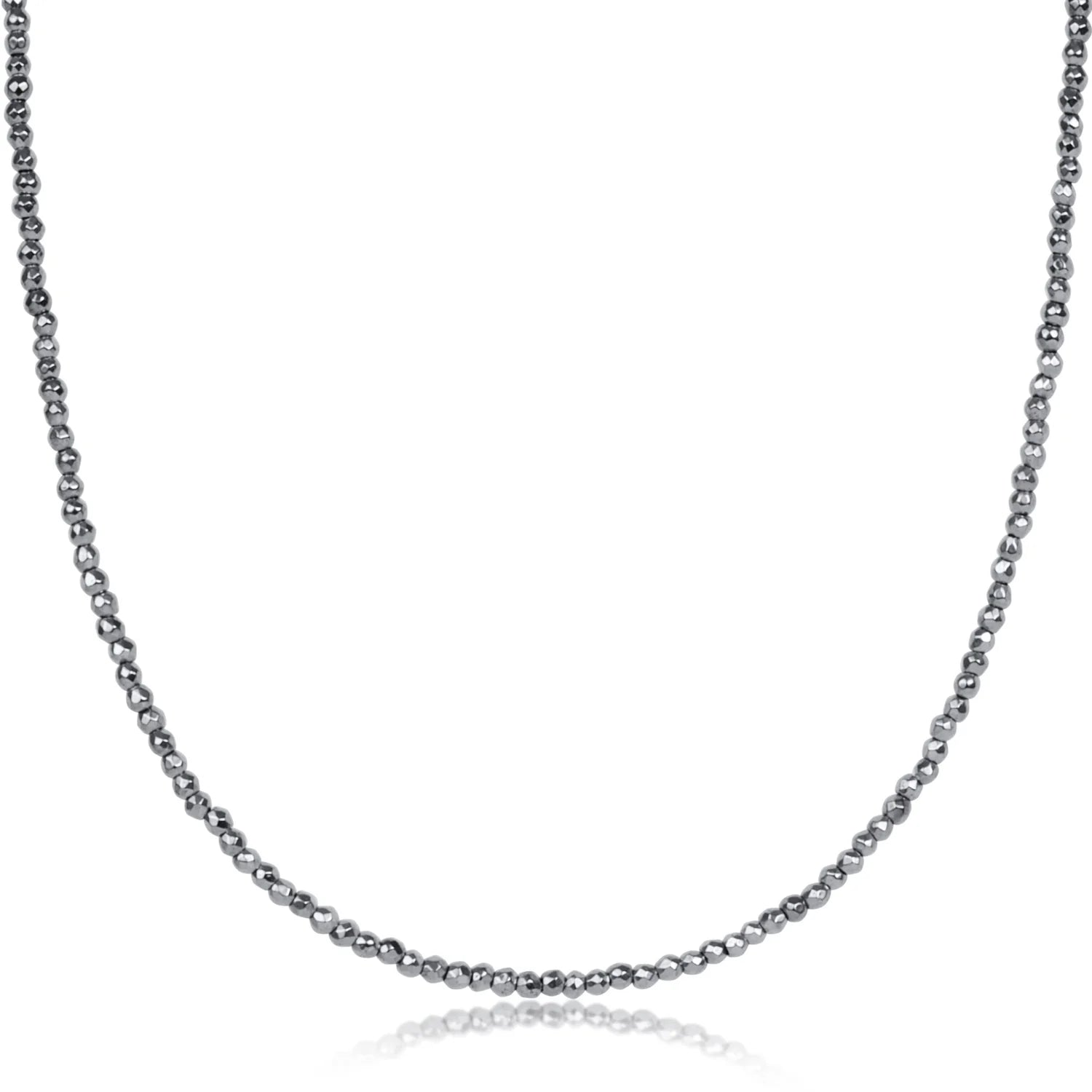 Choker Silver Faceted Hematite 2mm Bead