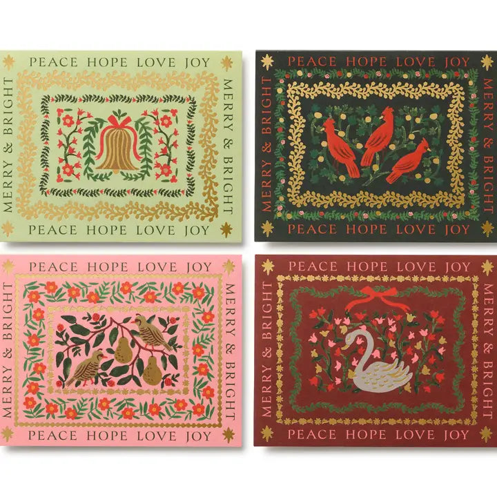 Always have a holiday card on hand with our Christmastide Keepsake Card Box. The illustrated box and pull-out tray are printed with intricate Christmastide artwork and accented in metallic gold foil. The assorted set of eight cards includes two of each festive design.