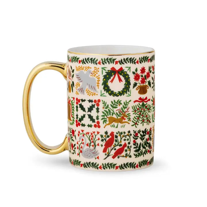 Inspired by heritage quilt patterns, our Christmastide mug is designed for festive, cozy mornings. A gilded rim and handle add a little something special to your favorite beverage.