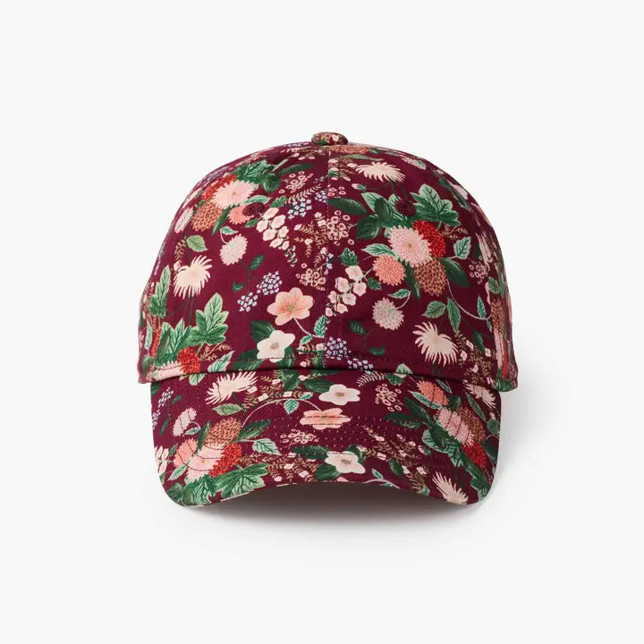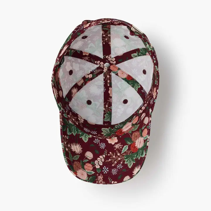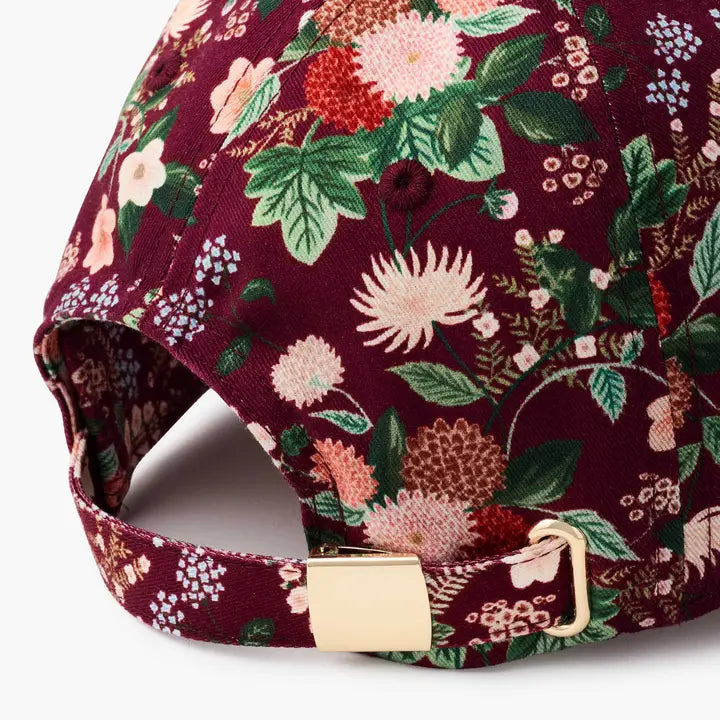 A classic six-panel baseball cap with embroidered Dahlia accents and adjustable strap for a perfect fit.