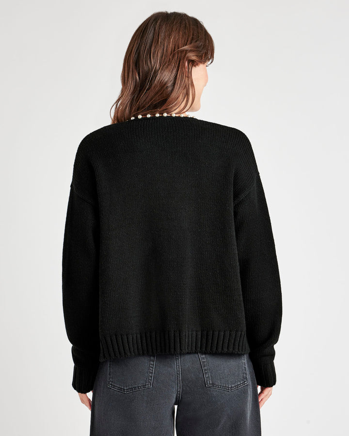 The classy Emmy Pearl Cardigan adds instant sophistication when topped over any look. Made from our signature Cashblend fabrication-- a soft blend made with a touch of cashmere-- this refined topper has an effortless open front design decorated with a playful pearl trim.