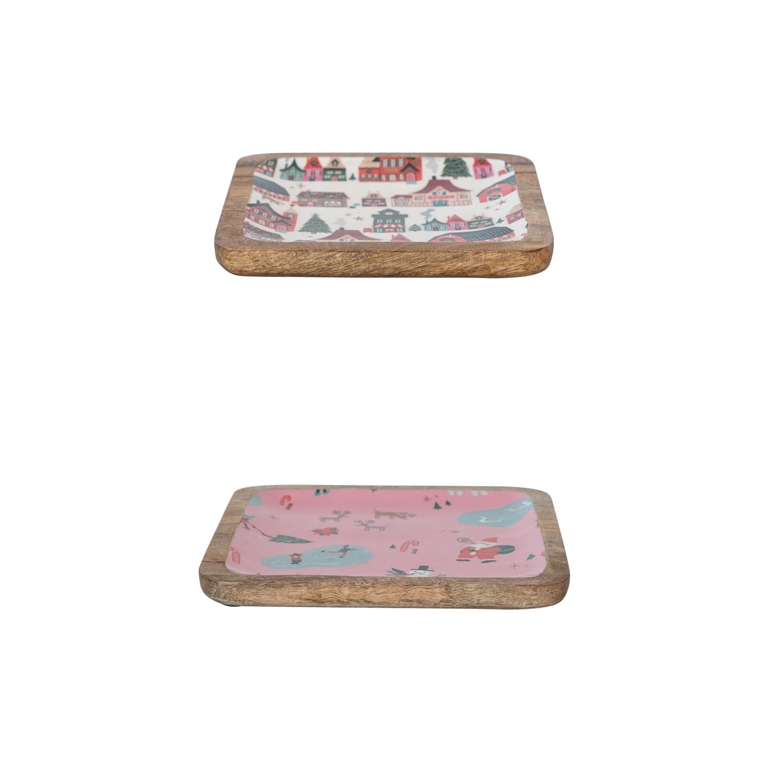 Enameled Mango Wood Trays with North Pole Patterns - 2 Styles