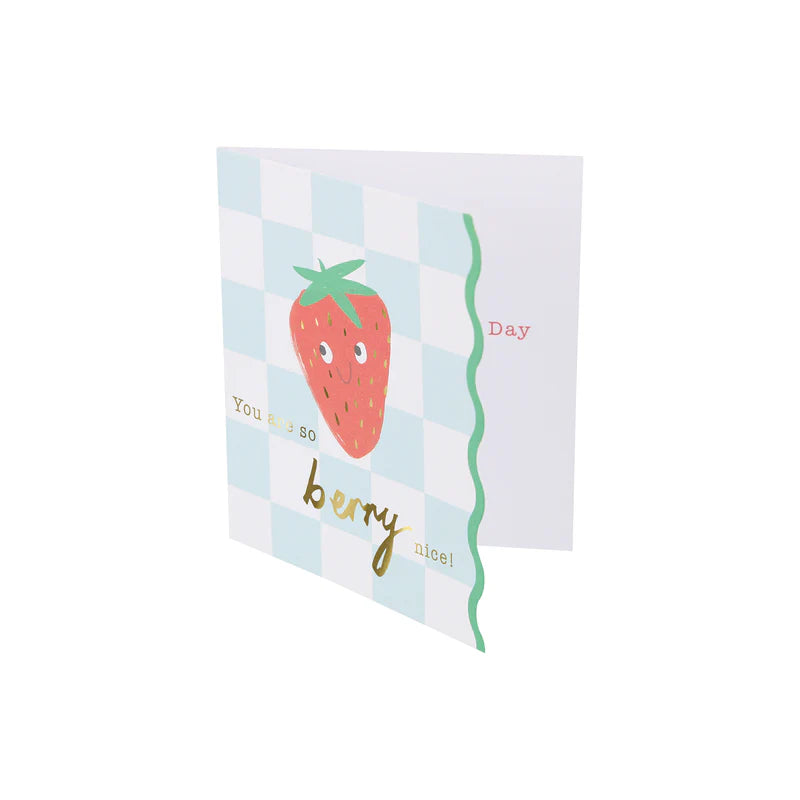 Here's a special container filled with love! Our talented designers have crafted a charming gingham paper punnet filled with fruit-themed Valentine's cards and matching fruit-shaped erasers. To top it off, you'll also receive little brown paper bags with heart stickers, adding a unique twist to traditional envelopes. Recipients are sure to swoon over these delightful Valentine's gifts!