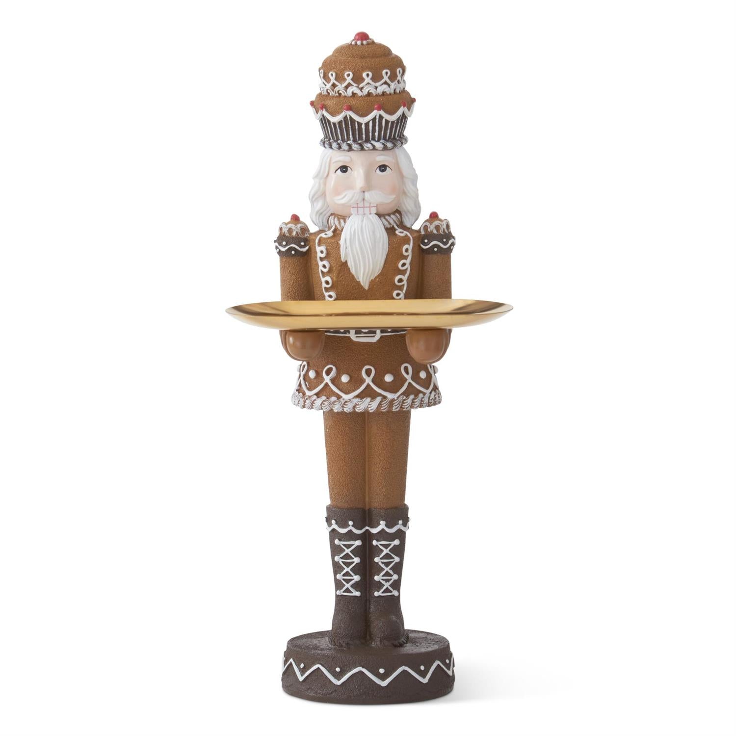 Gingerbread Nutcracker Holding Gold Oval Tray