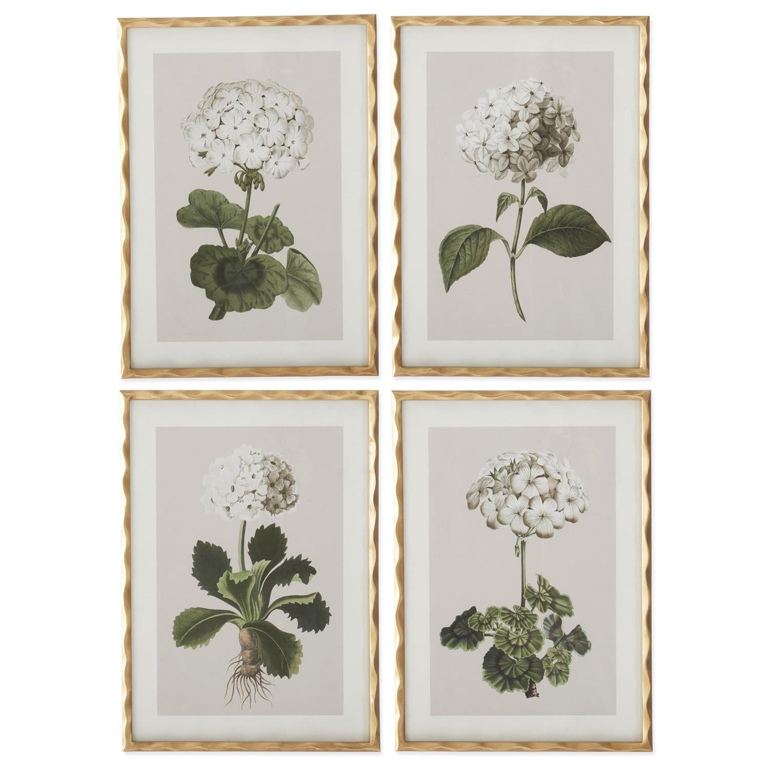 Gold Ornate Wood Framed White Geranium Prints - 4 Styles