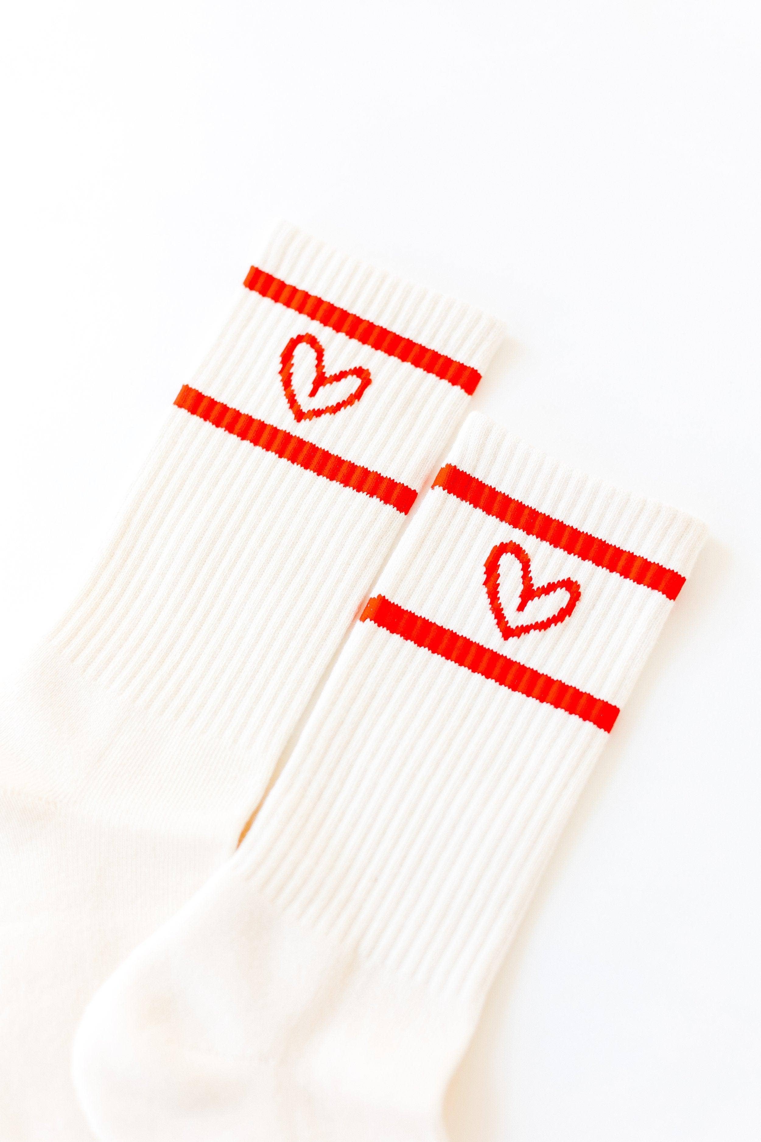 Imperfect Heart Socks - Creme with Red