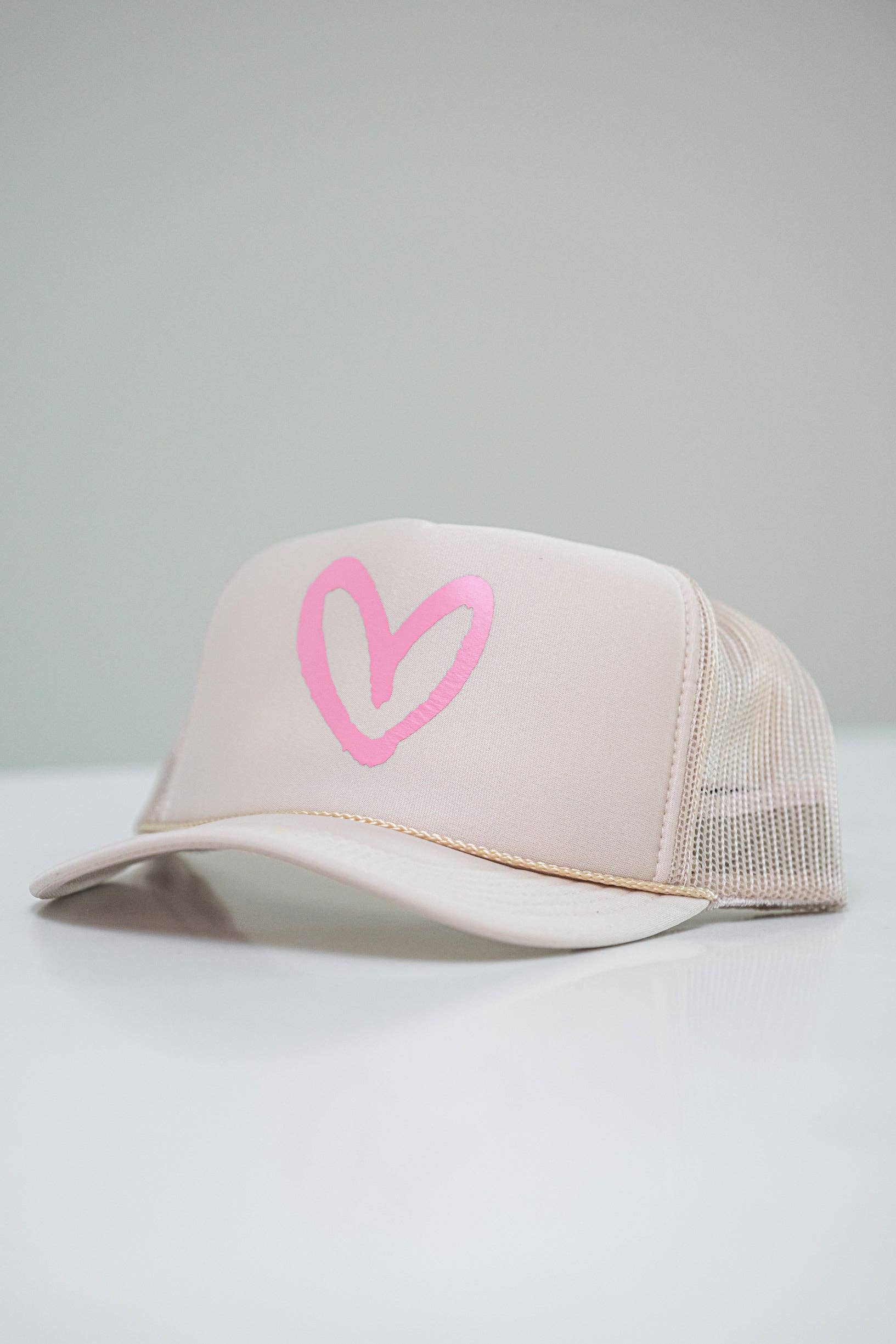 Imperfect Heart Trucker Hat - Classic Colorway Tan/Pink