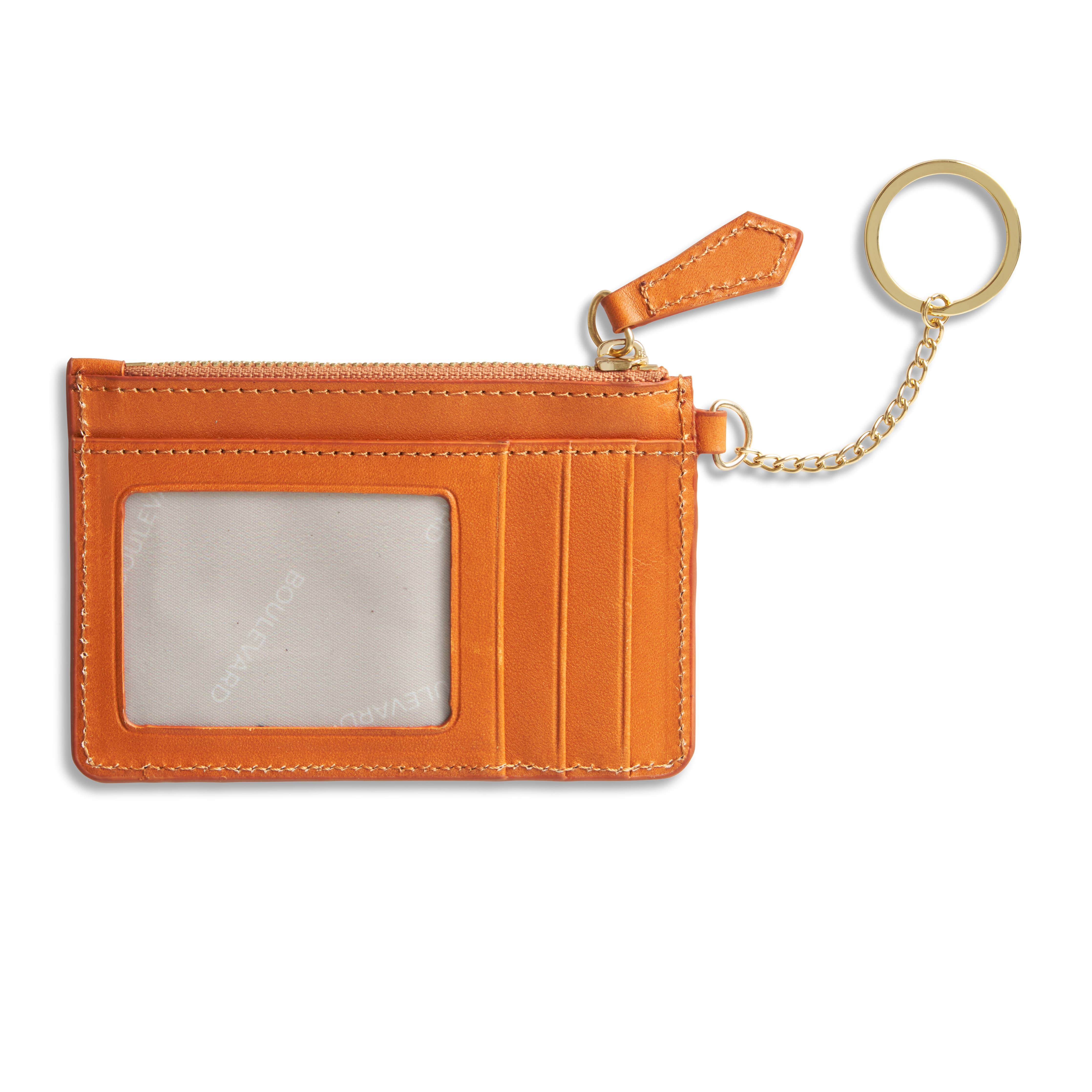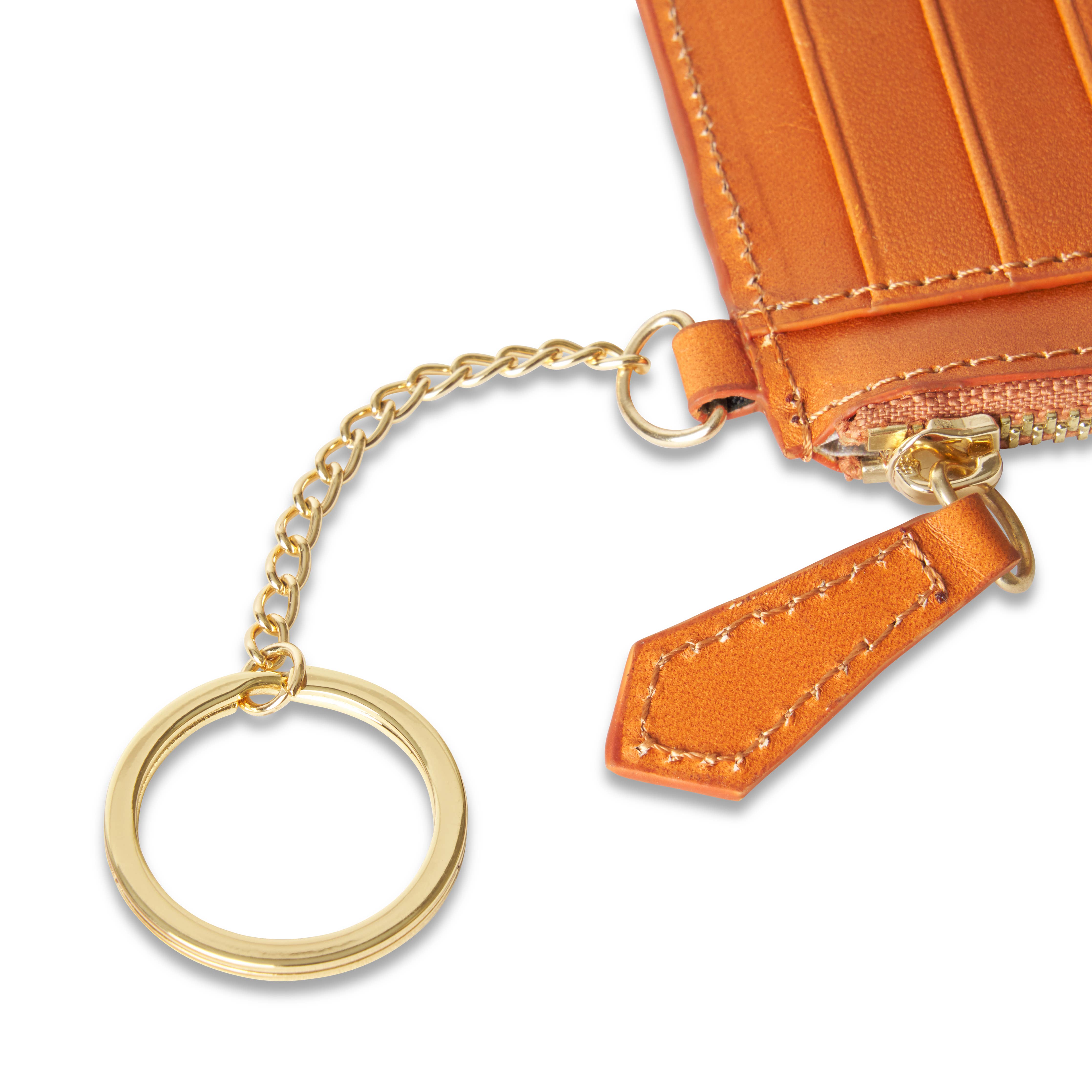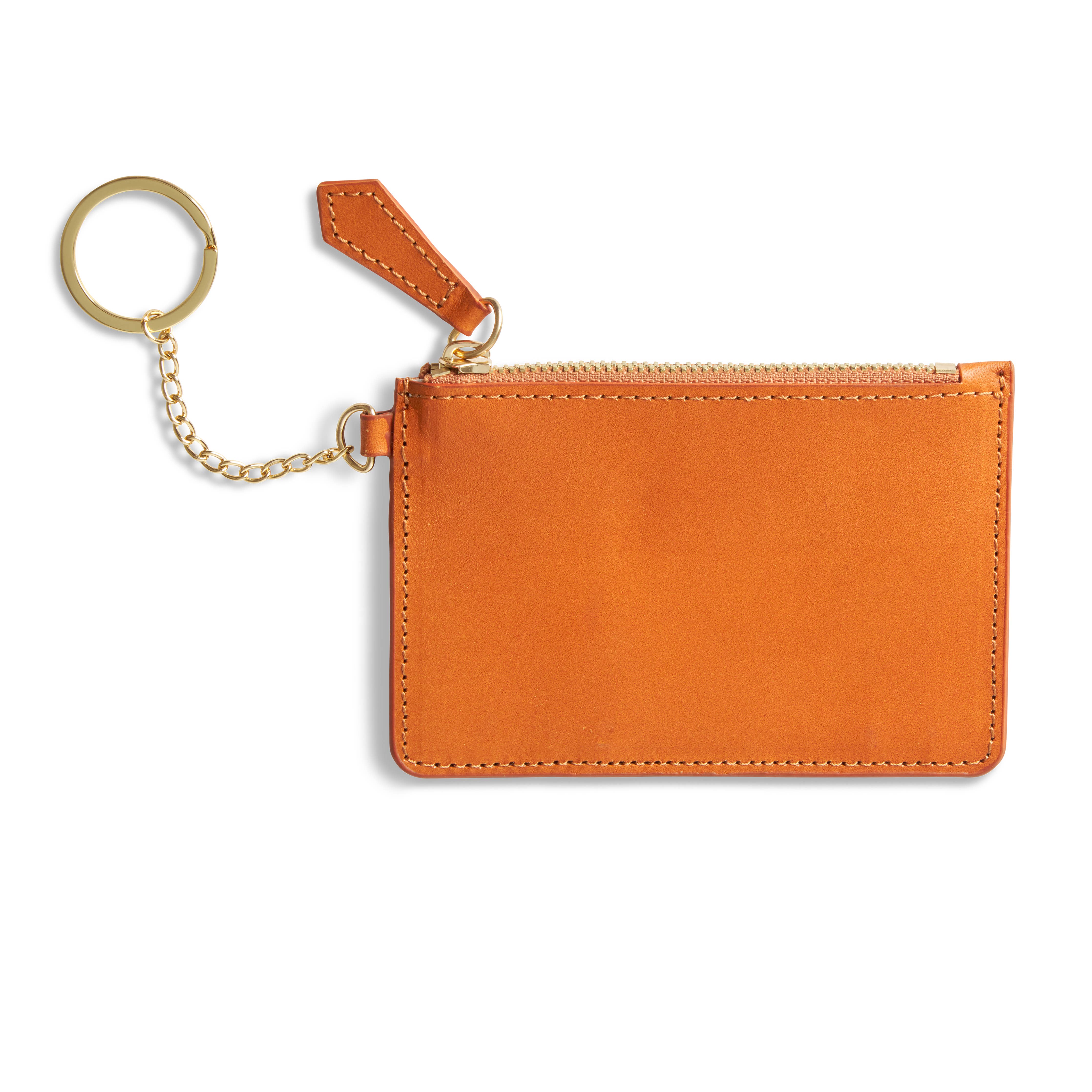 The best way to keep your cash and cards at-the-ready at all times. Features: Full grain leather. Top zip coin pocket. ID window, two card slots. Exterior slip pocket. Key ring Gold-tone hardware.