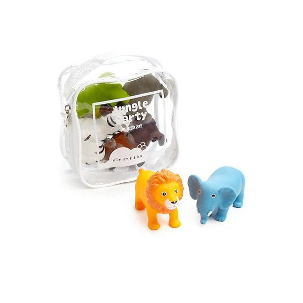 Get ready for lots of fun in the tub. Now, the party doesn't have to end when it's bath time for your little one! They're perfect for beach and pool time as well because our Party Squirtie Sets float and squirt water! Your little animal lover will simply adore the Jungle Party Squirties pack, which includes a zebra, lion, yak, elephant, hippo, and rhino.