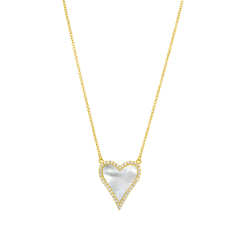 18k gold plated 925 sterling silver Mother of Pearl, 16-18" adjustable length.