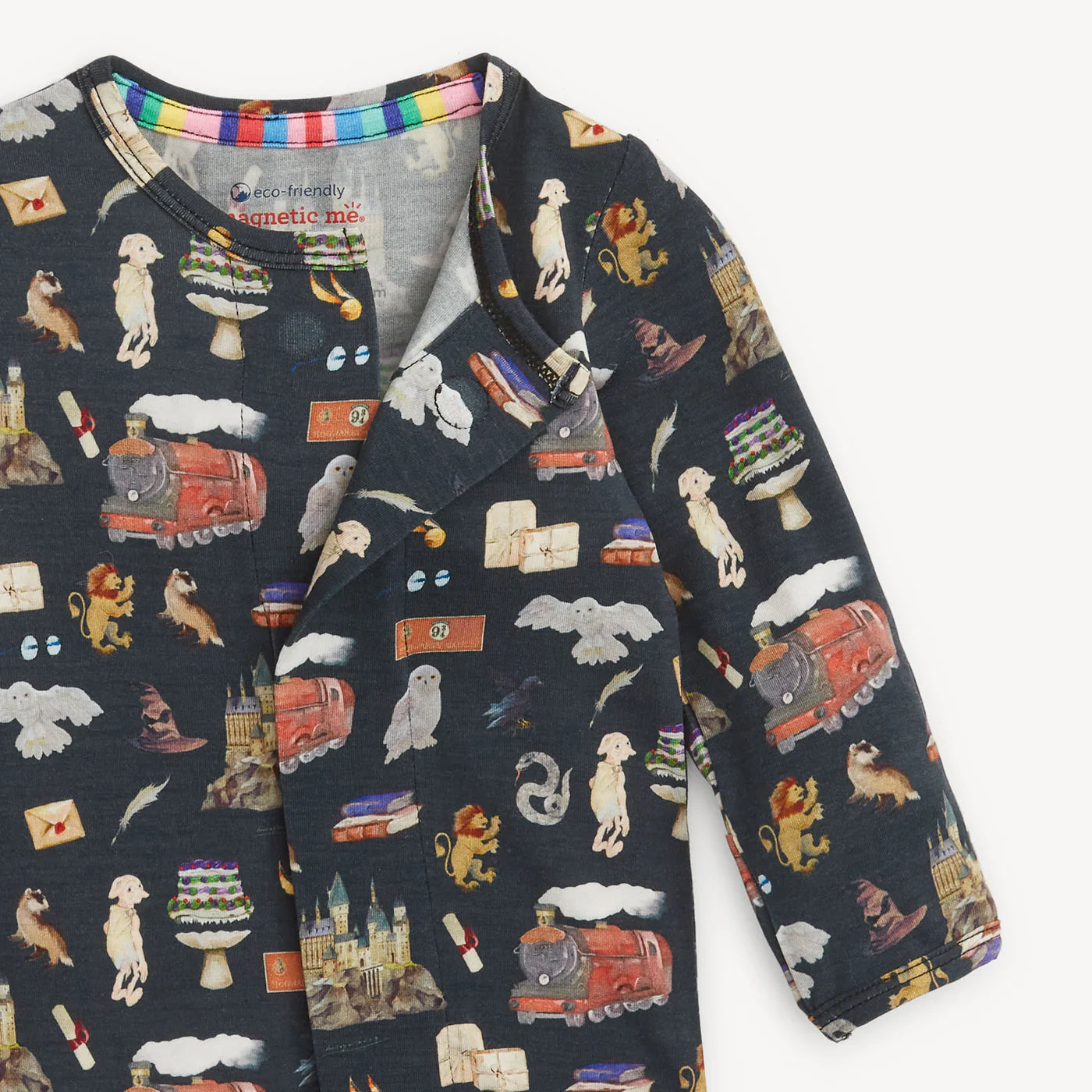 - Magnetic closures: magnets line the seam from the neck to upper thigh for sizes up to 0-3m & from neck to crotch for sizes 3-6m and up.