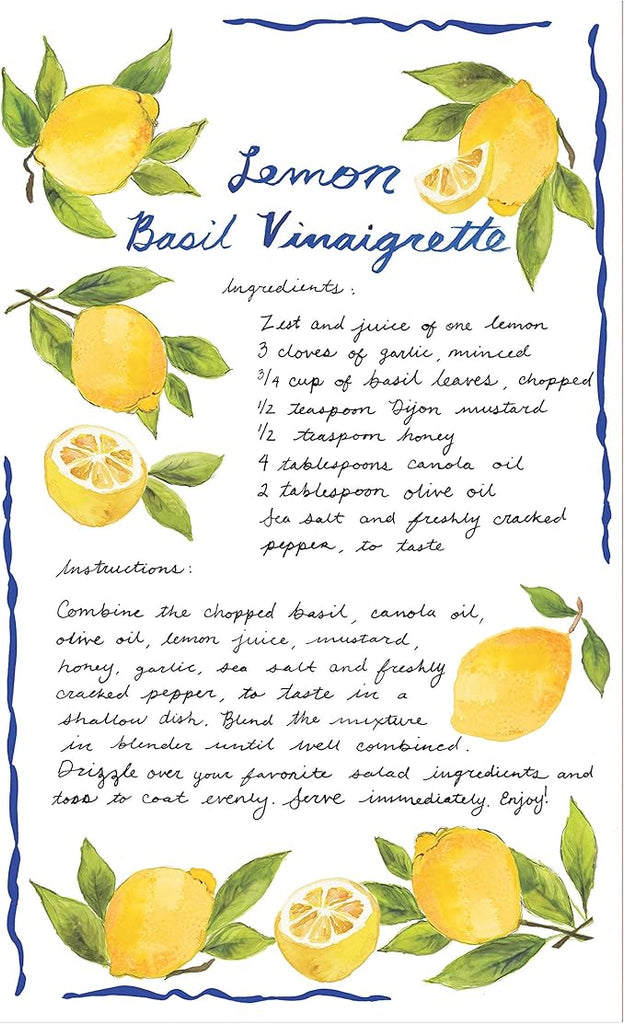Our Lemon Basil spoon rest with a cotton flour sack tea towel makes gift giving effortless! Tea towel is printed with a Lemon Basil Vinaigrette recipe. Perfect for any occasion and pairs well with our dinnerware and serving pieces in Palermo collection. BPA Free 100% melamine, shatter resistant and dishwasher safe, top and bottom rack, as with all melamine, not recommended for microwave. Product includes 1 x 9” Spoon Rest and a 29” x 18” Cotton Tea Towel.