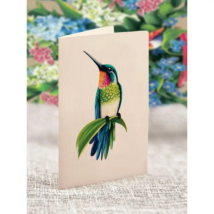 The Mini Pop-Up Hummingbird Oasis is a joyful burst of color and movement, perfect for marking all of life’s brightest occasions. A flurry of pop-up hummingbirds hovers above blooming verbena, forget-me-nots, and delphiniums, all nestled in a vintage-inspired pink glass vase. Soft greens and floral details echo the beauty of spring and summer in full bloom. Thoughtfully designed and easy to display, it’s a charming way to celebrate birthdays, milestones, or simply to bring a little sunshine indoors.