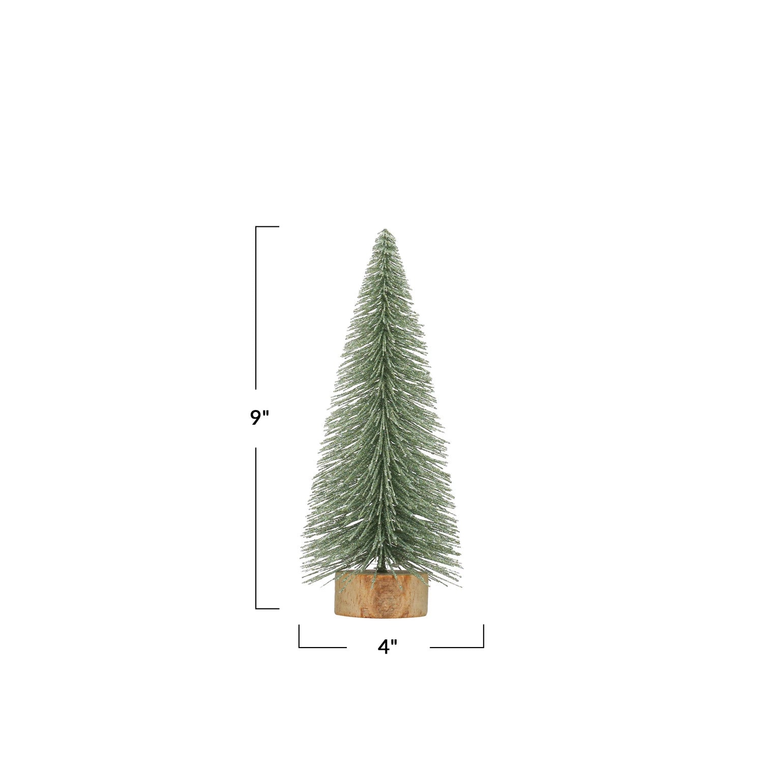 Plastic Bottle Brush Tree w/ Glitter & Wood Base, Mint Color - 2 Sizes