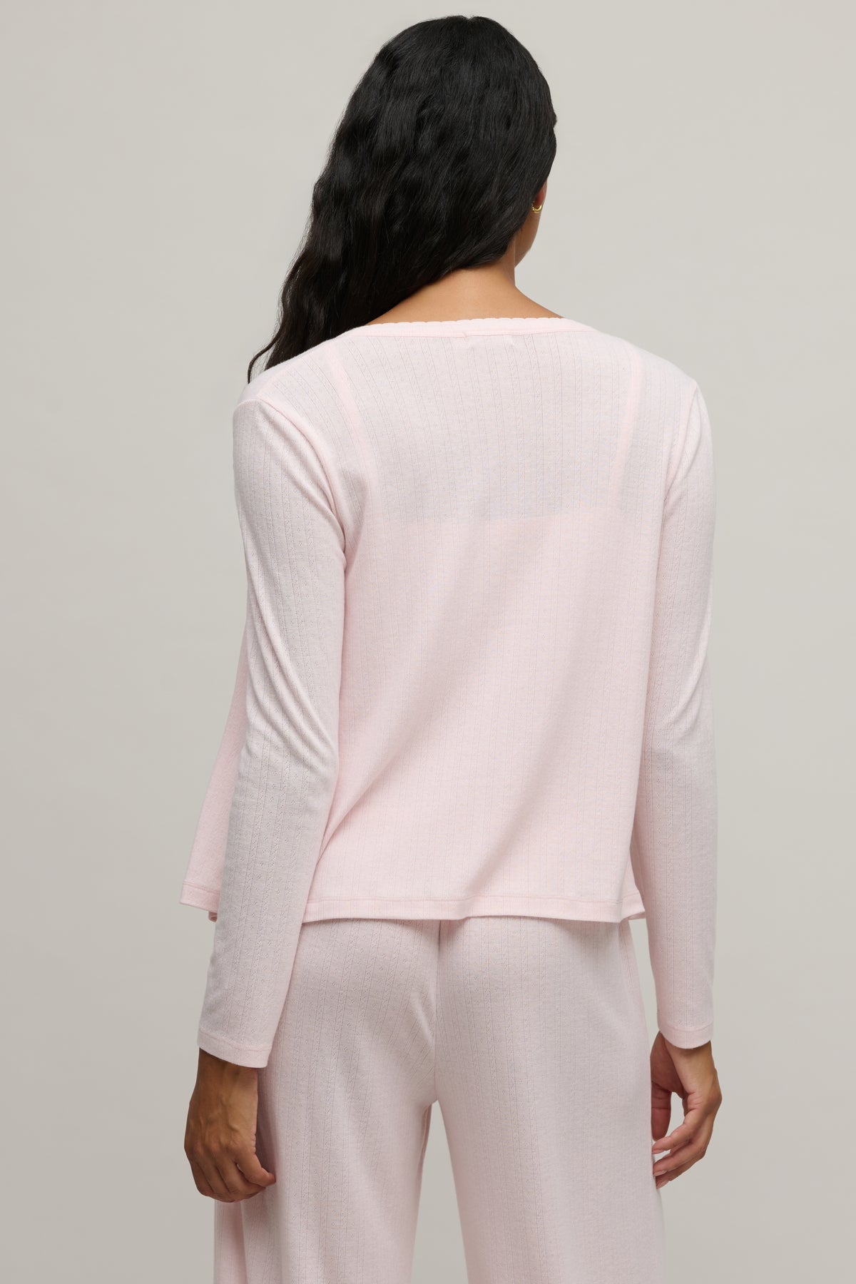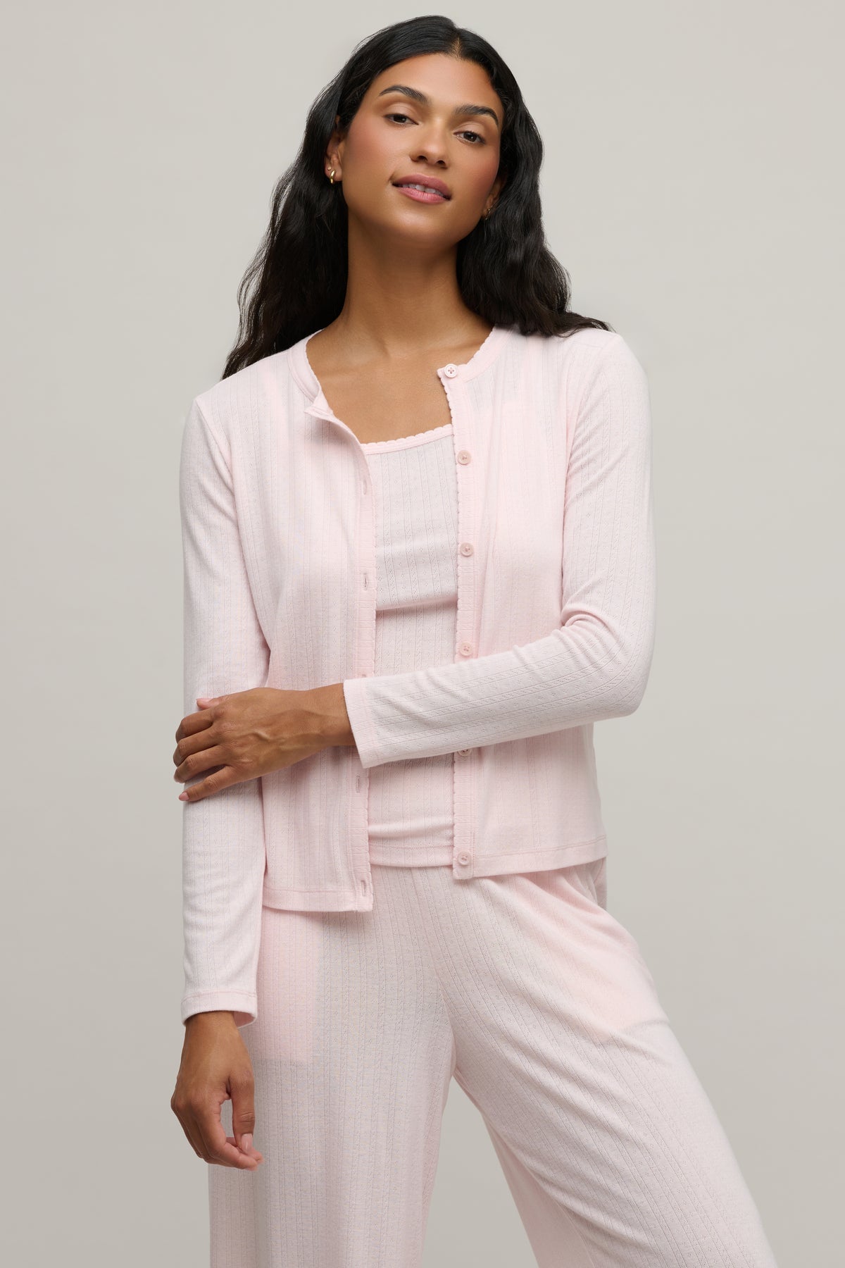 Pointelle Rib Cardigan with Scallop Trim - Pink Sand