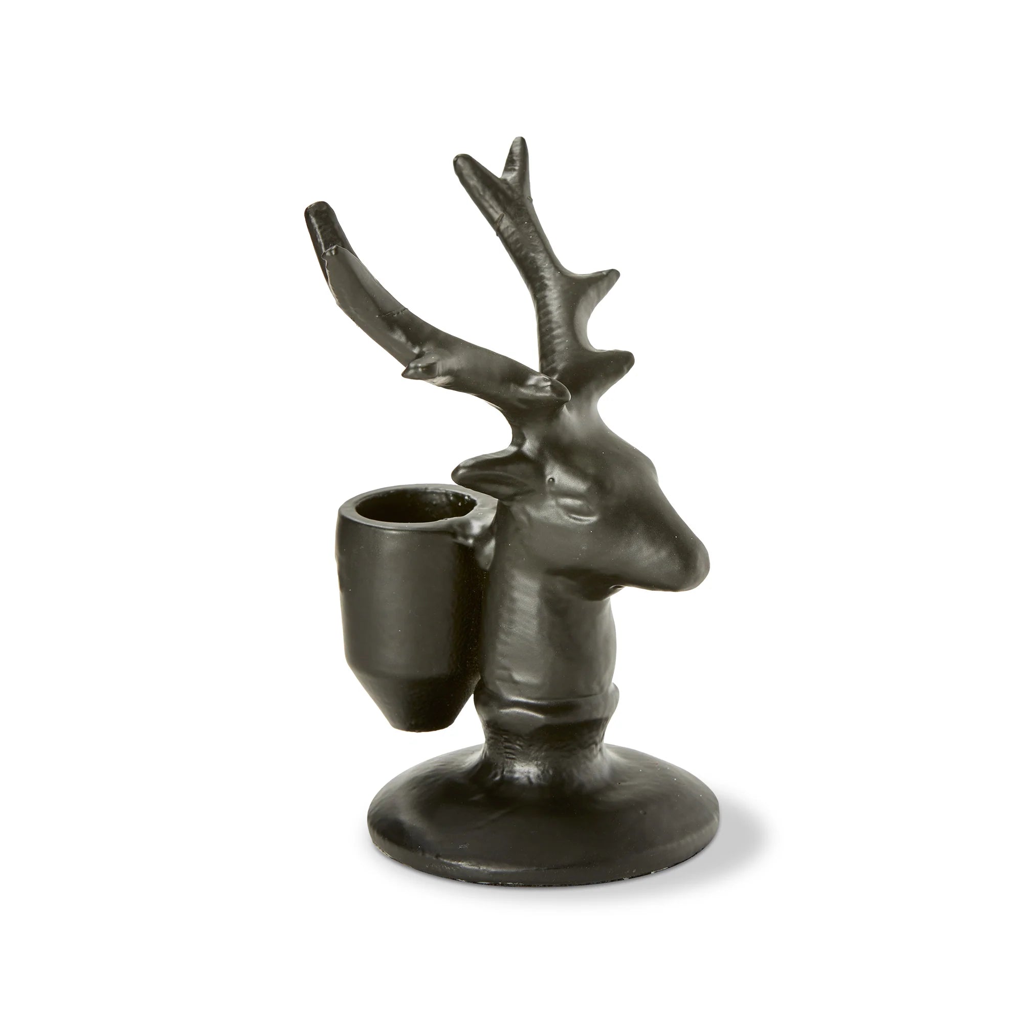 This taper holder is a fun and festive way to add light and ambiance to your home during the holiday season. the black aluminum reindeer taper holder is small and makes a perfect accent for any room.