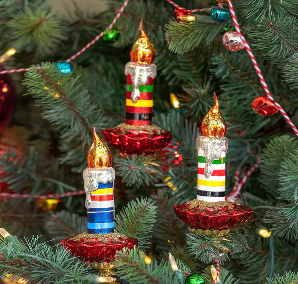 Retro Pattern Glass Clip on Candle Ornament, 3 Assorted Styles