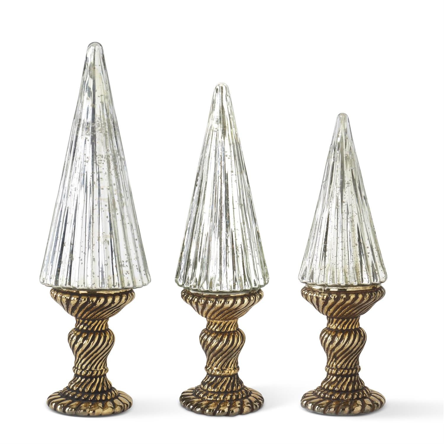 Silver Mercury Glass Trees on Gold Mercury Glass Stands