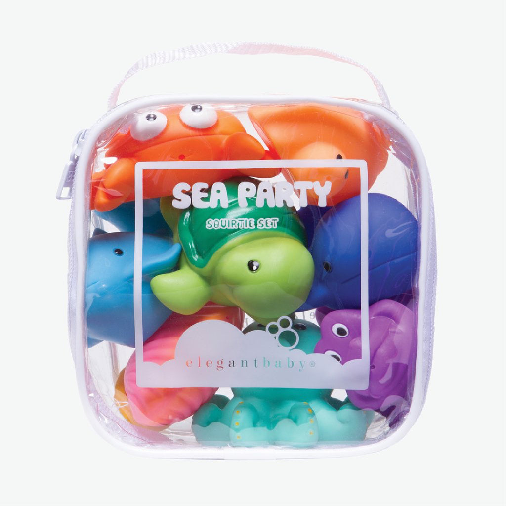 Get ready for lots of fun in the tub. Now, the party doesn't have to end when it's bath time for your little one! They're perfect for beach and pool time as well because our Lazy Tubbies float and squirt water! Every baby beachgoer will love the Sea Party Squirties pack complete with a crab, sea turtle, dolphin, seashell and more.