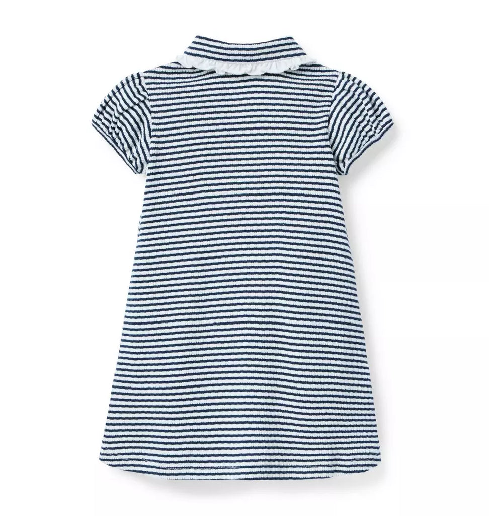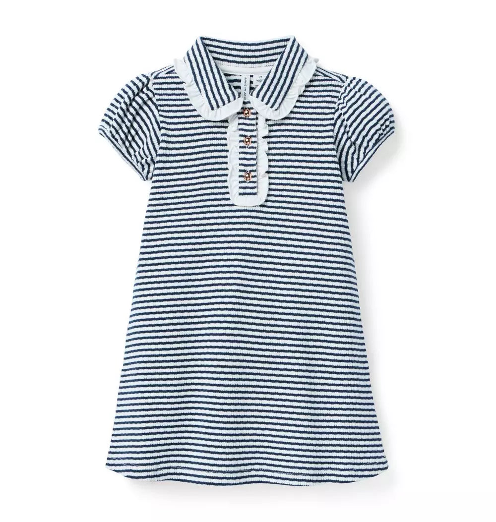 - This striped dress is always in our lineup. Designed in textured jersey with puff sleeves and ruffle trim.