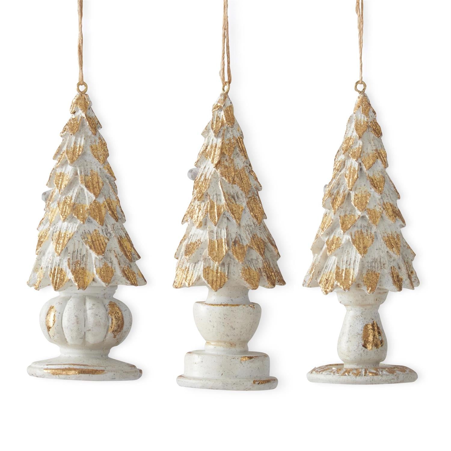 Whitewashed Tree w/Gold Leaves on Base Ornaments